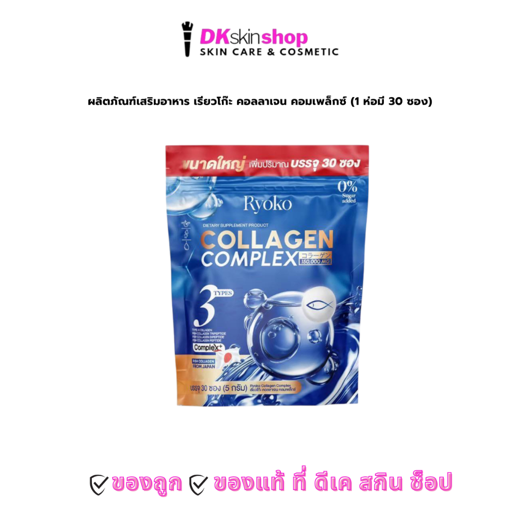 เรียวโก๊ะ คอลลาเจน คอมเพล็กซ์ ผลิตภัณฑ์เสริมอาหาร Ryoko Collagen Complex Dietary Supplement product (1 ห่อมี 30 ซอง)