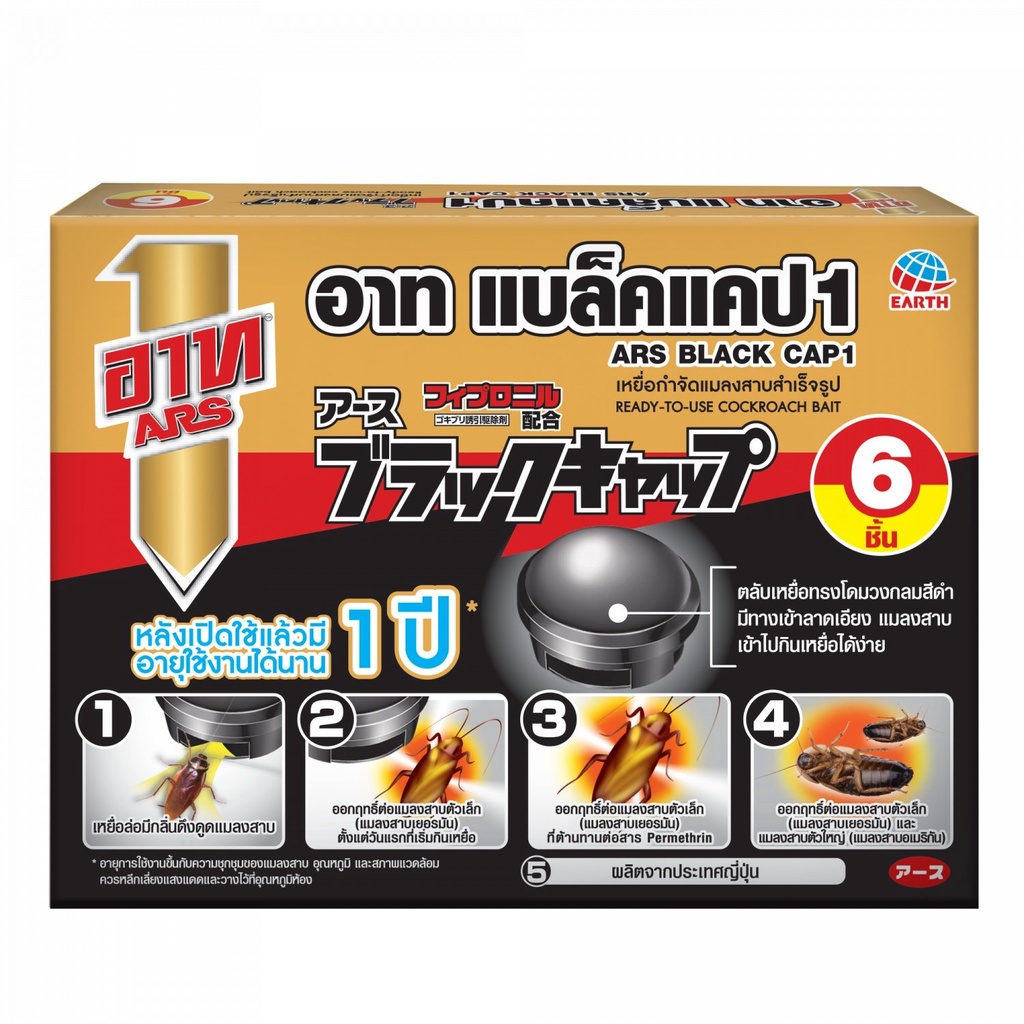 GlobalHouse ARS อาท เหยื่อกำจัดแมลงสาบสำเร็จรูป 6 ชิ้น รุ่น แบล็คแคป สินค้าของแท้คุณภาพดี