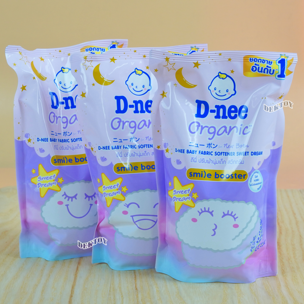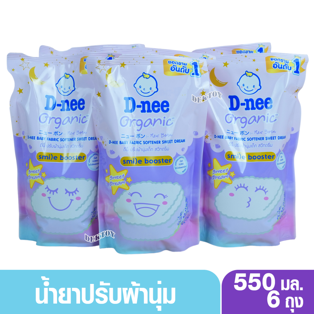 6 ถุง D-nee ดีนี่ Organic น้ำยาปรับผ้านุ่มเด็ก สวีทดรีม 530 มล. smile booster สีม่วง