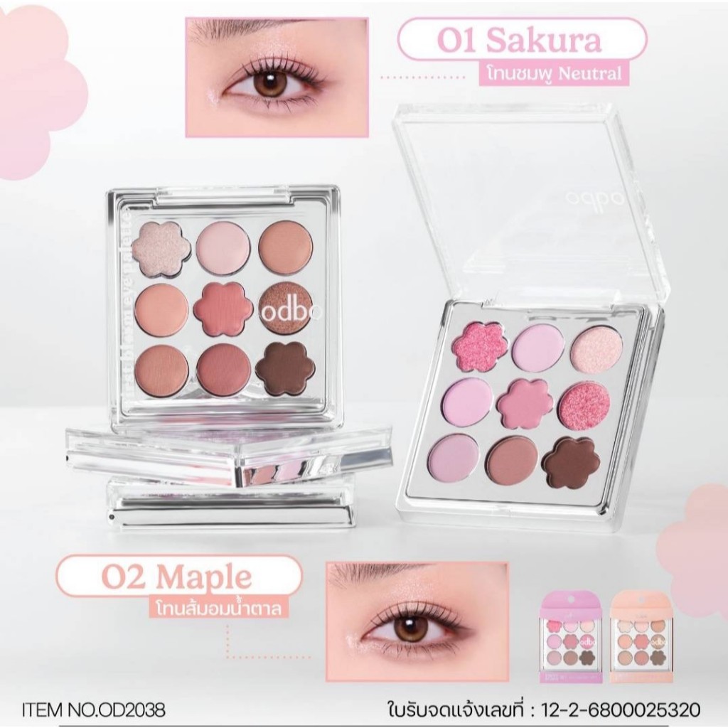 OD2038 odbo โอดีบีโอ อายแชโดว์พาเลทดอกไม้ โทนสีชมพู-ส้มถูกคัดเลือกอย่างพิถีพิถัน ไม่ฉูดฉาดเกินไป