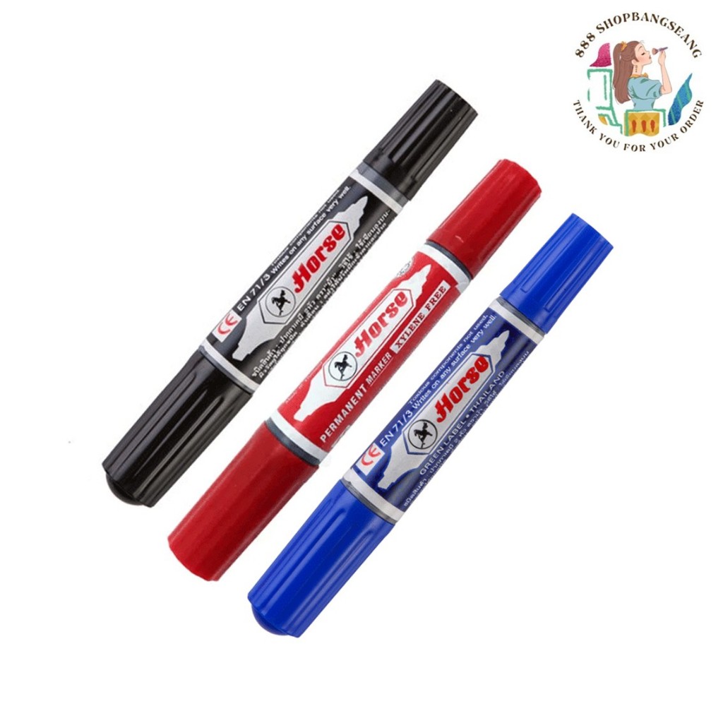 (1 ด้าม) ปากกาเคมี 2 หัว ตราม้า Horse