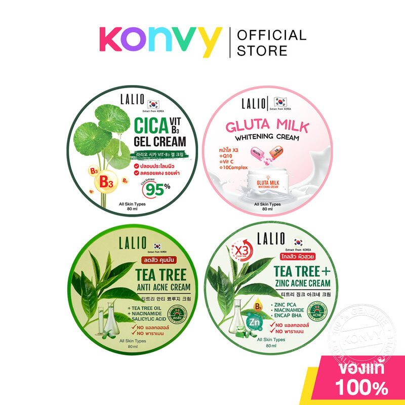 Lalio Cream ลาลิโอ ครีมบำรุงผิว 80ml (Tea Tree/Cica/Gluta Milk/Tea Tree + Zinc)
