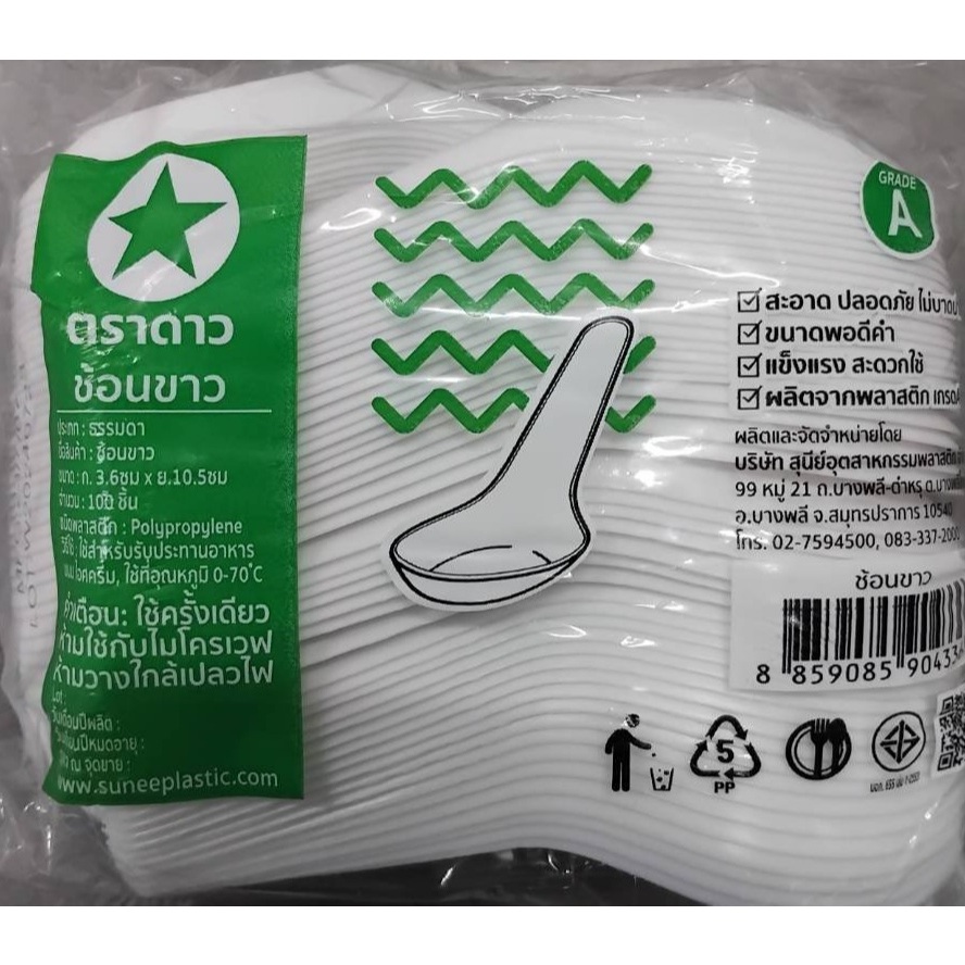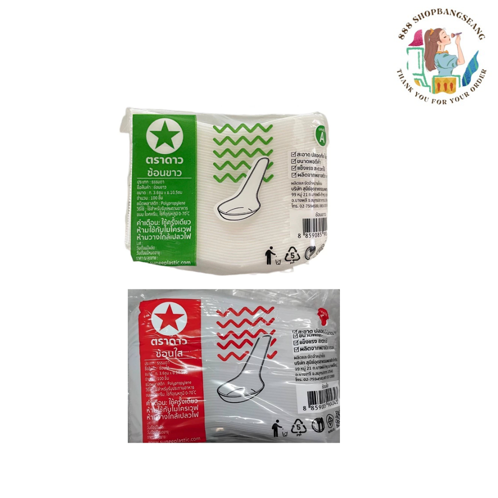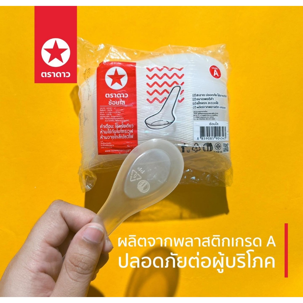 ช้อนสั้นพลาสติก ตราดาว เกรด A 100ชิ้น