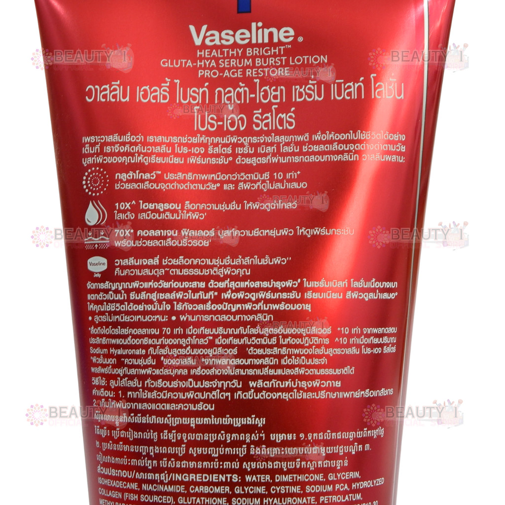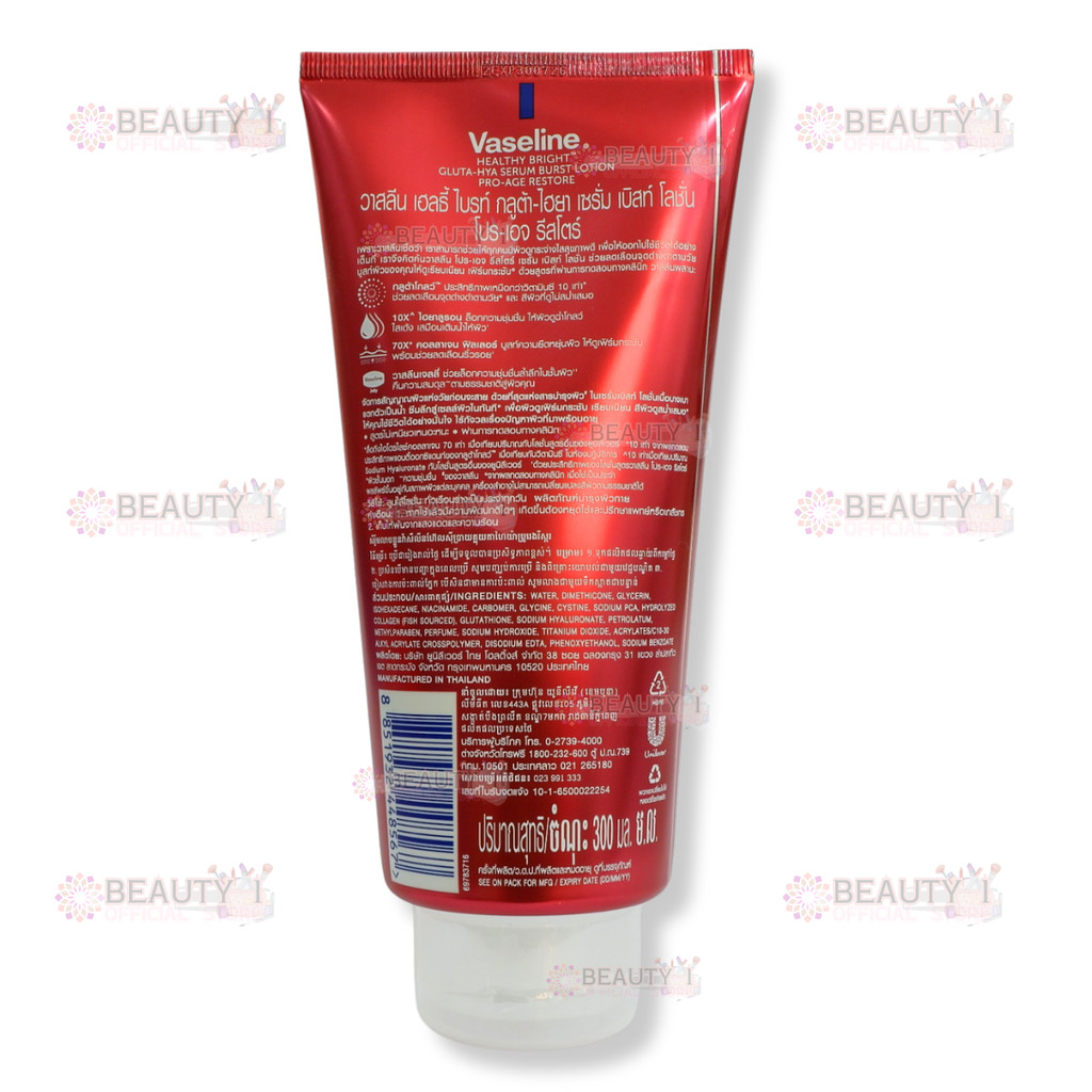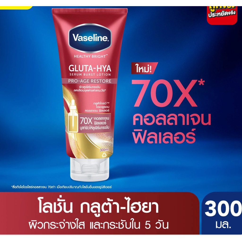 1 หลอด โปร-เอจ รีสโตร์ Vaseline วาสลีน เฮลธี ไบรท์ กลูต้า-ไฮยา เซรั่ม เบิสท์ โลชั่น 300 มล.