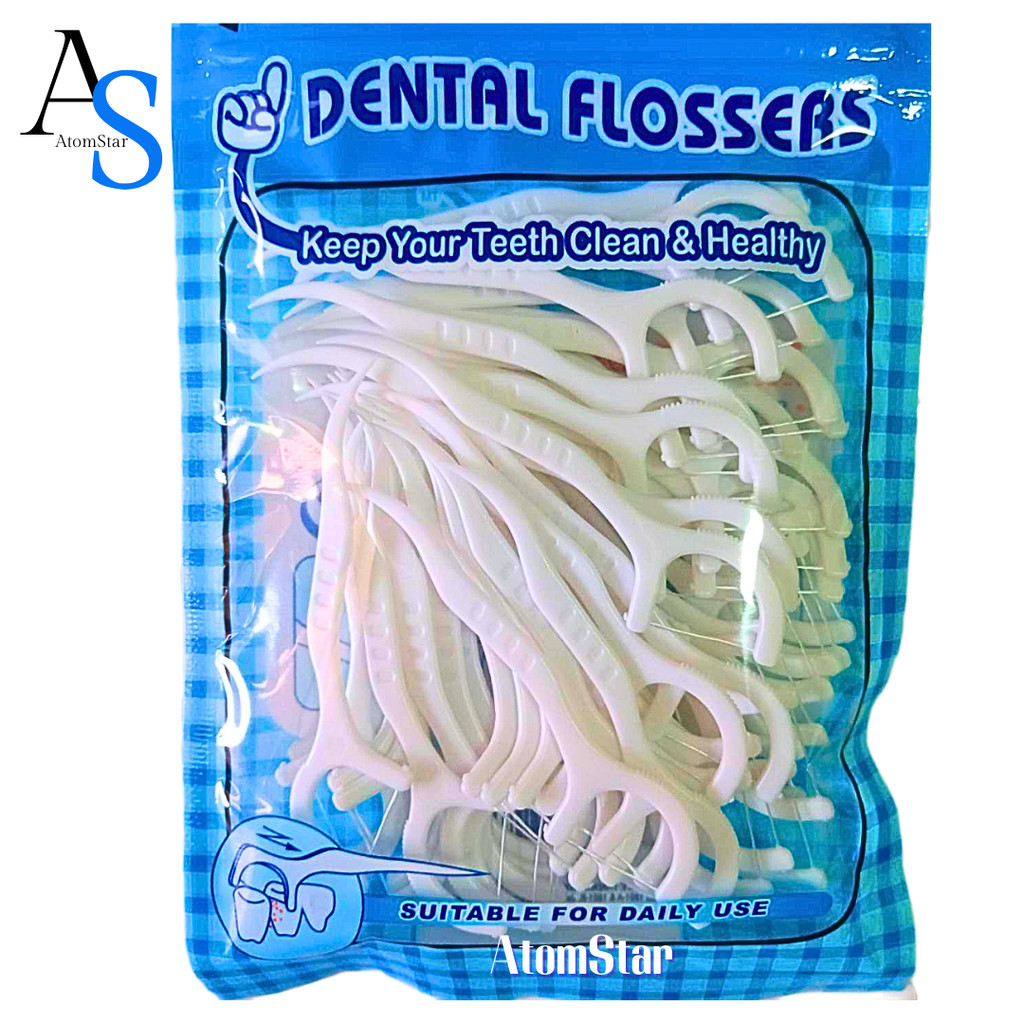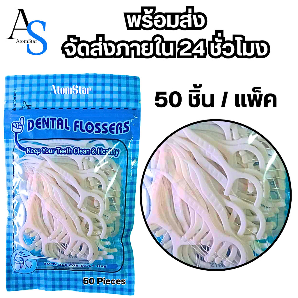Dental Flossers ไหมขัดฟันแบบด้าม 50ชิ้น /แพ็ค ใช้แล้วทิ้ง ไม้จิ้มฟัน เขี่ยเศษอาหารตามซอกฟัน ช่องปาก