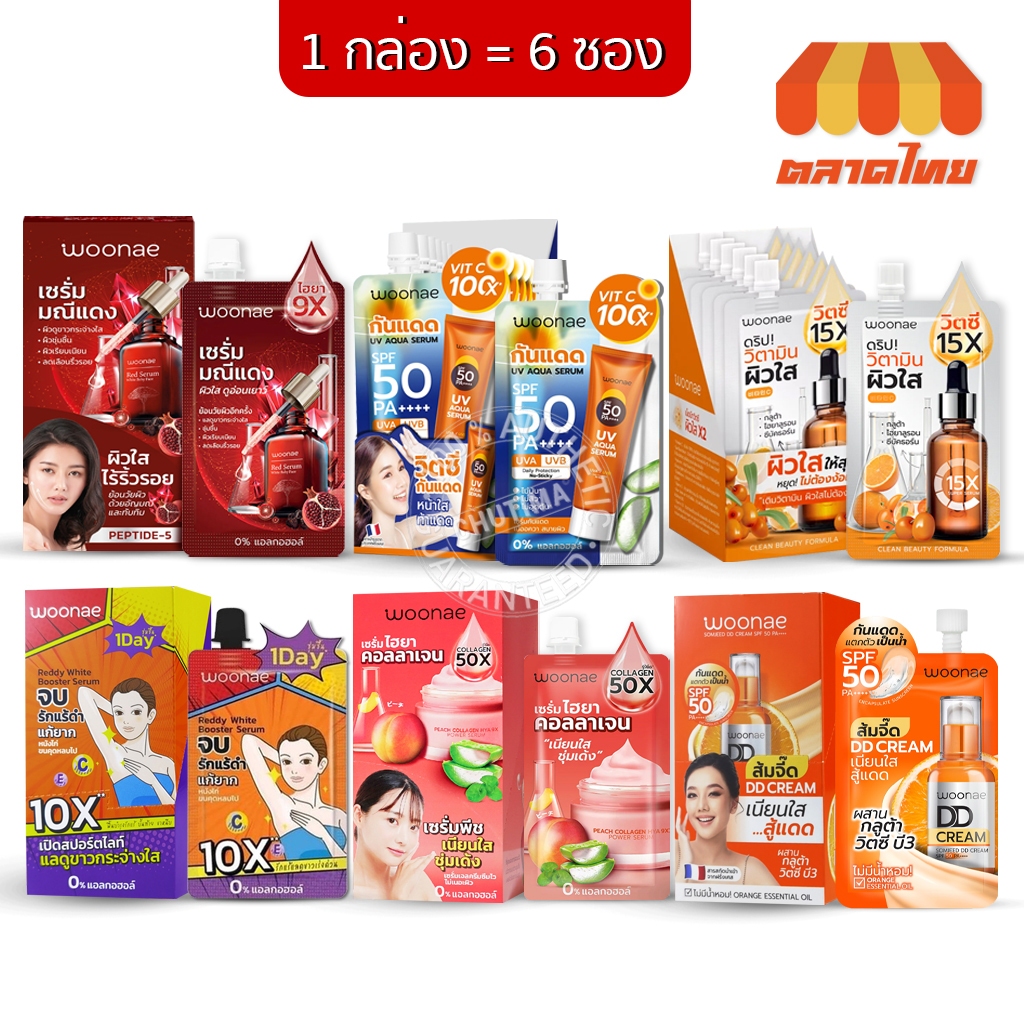 (กล่อง 6 ซอง) วูเน่ เซรั่ม เซรั่มบำรุงผิวหน้า ผิวกาย/ กันแดด/ บำรุงรักแร้ ขาหนีบ Woonae Serum x6