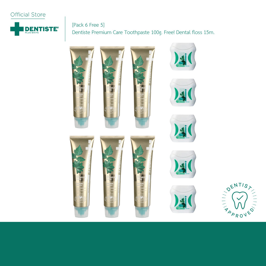 [แพ็คสุดคุ้ม 6ชิ้น] Dentiste Premium Care Toothpaste 100 g.- เดนทิสเต้ ยาสีฟัน สูตร พรีเมี่ยม แถมฟรี! Dental Floss 15 m.