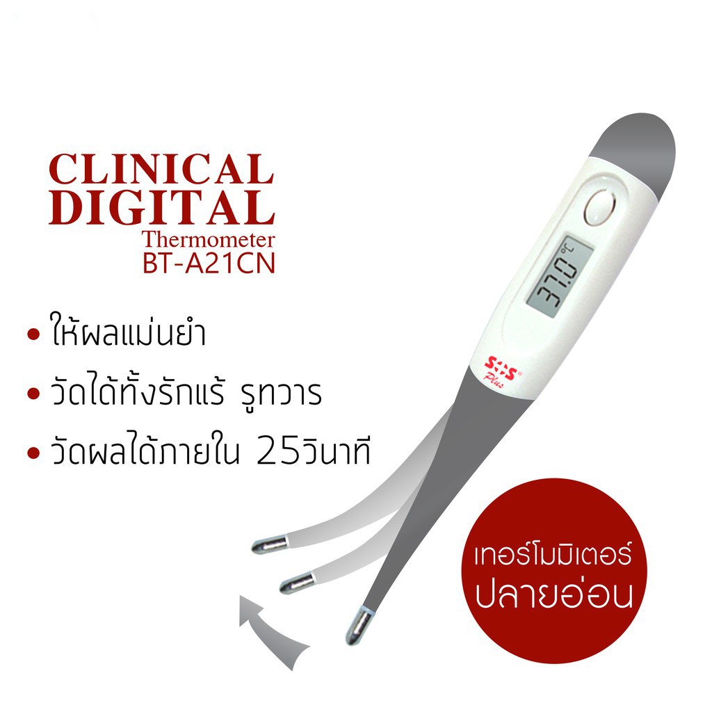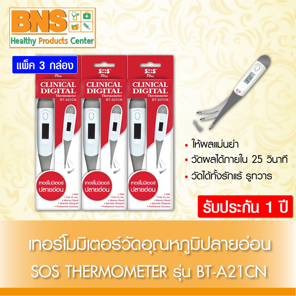 ส่งเร็ว !! ( แพ็ค 3 ชิ้น ) Sos thermometer เอสโอเอส ปรอทวัดไข้ดิจิตอล แบบปลายอ่อน รุ่น BT-A21CN (มีรับประกัน 1 ปี)