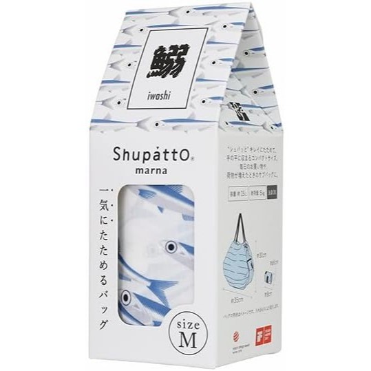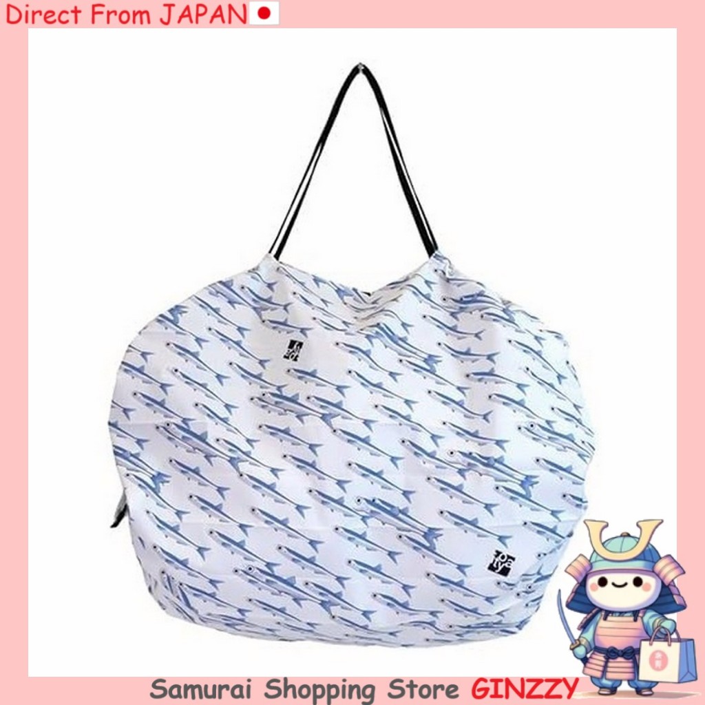 Marna Shupatto Itoya ถุงช้อปปิ้งพับได้ ขนาด M สีขาว × น้ำเงิน กระเป๋าญี่ปุ่น