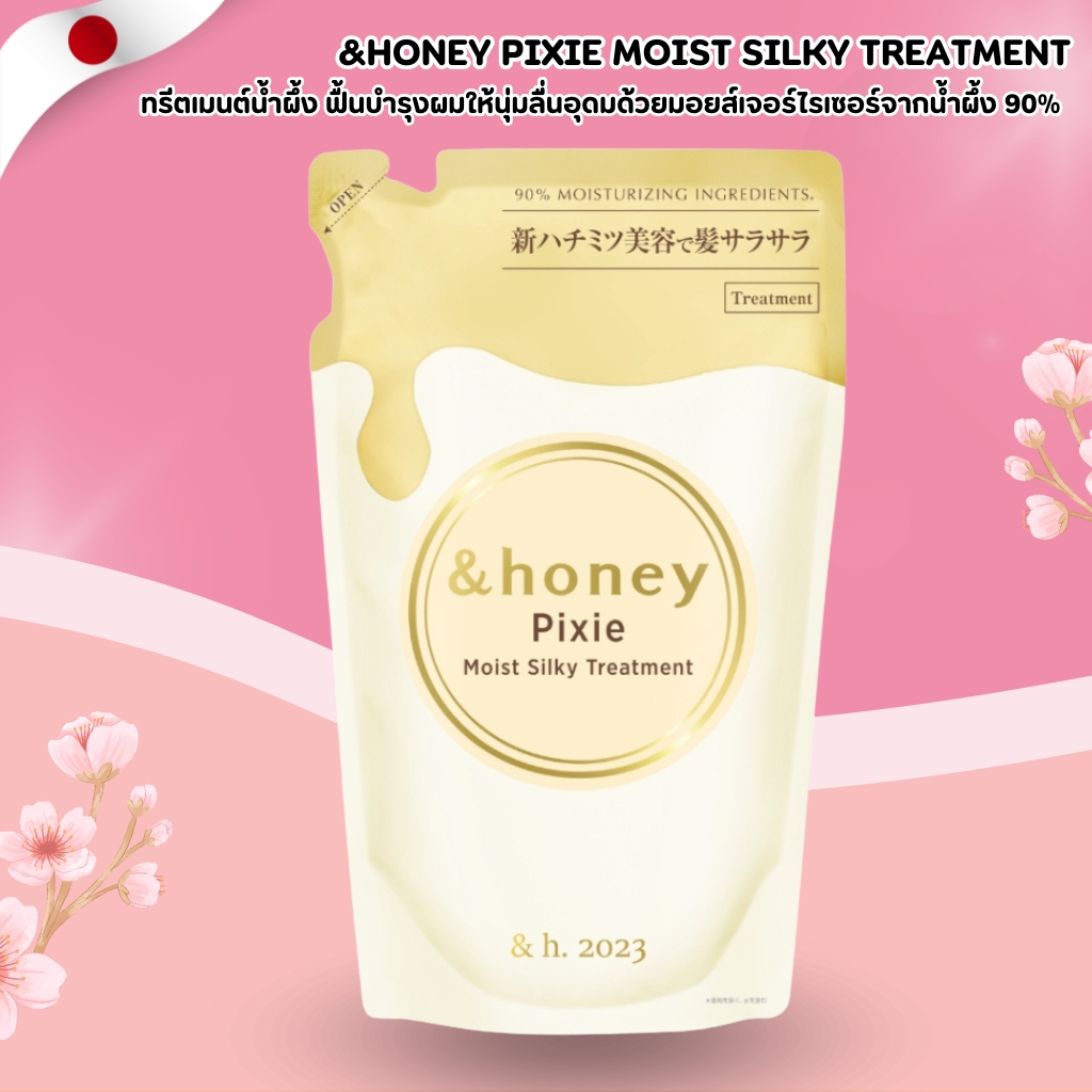 &honey Pixie Moist Silky Treatment 🍯💛 ทรีตเมนต์น้ำผึ้ง ฟื้นบำรุงผมให้นุ่มลื่นดุจแพรไหม (350g รีฟิล) No.Jp344