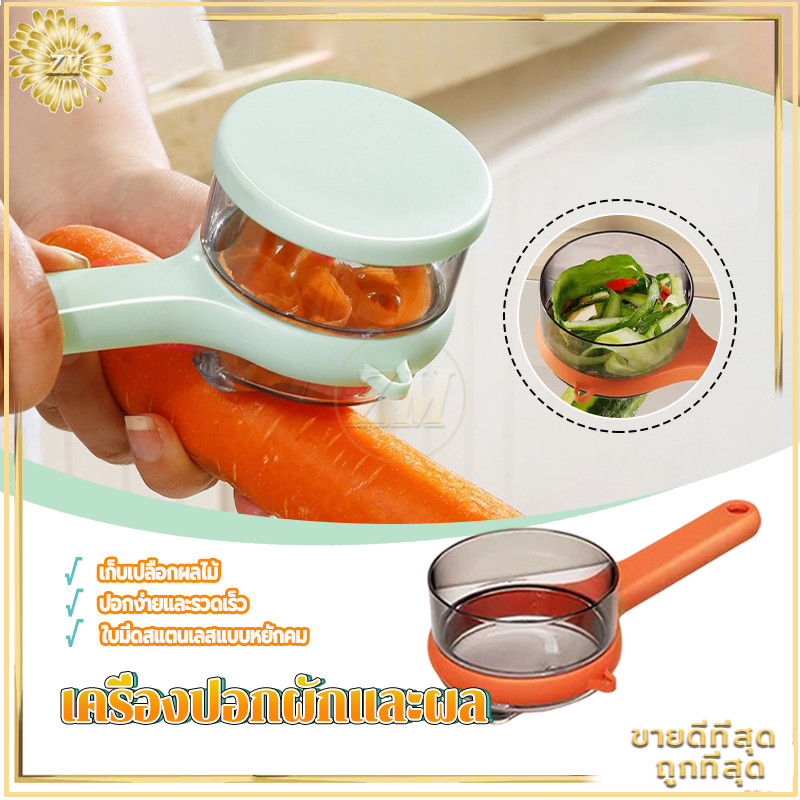ที่ปอกผลไม้ เครื่องปอกผักและผล มีดปอก เครื่องปอกผลไม้สองด้านพร้อมกล่องเก็บ อุปกรณ์ครัวอเนกประสงค์สำหรับผัก