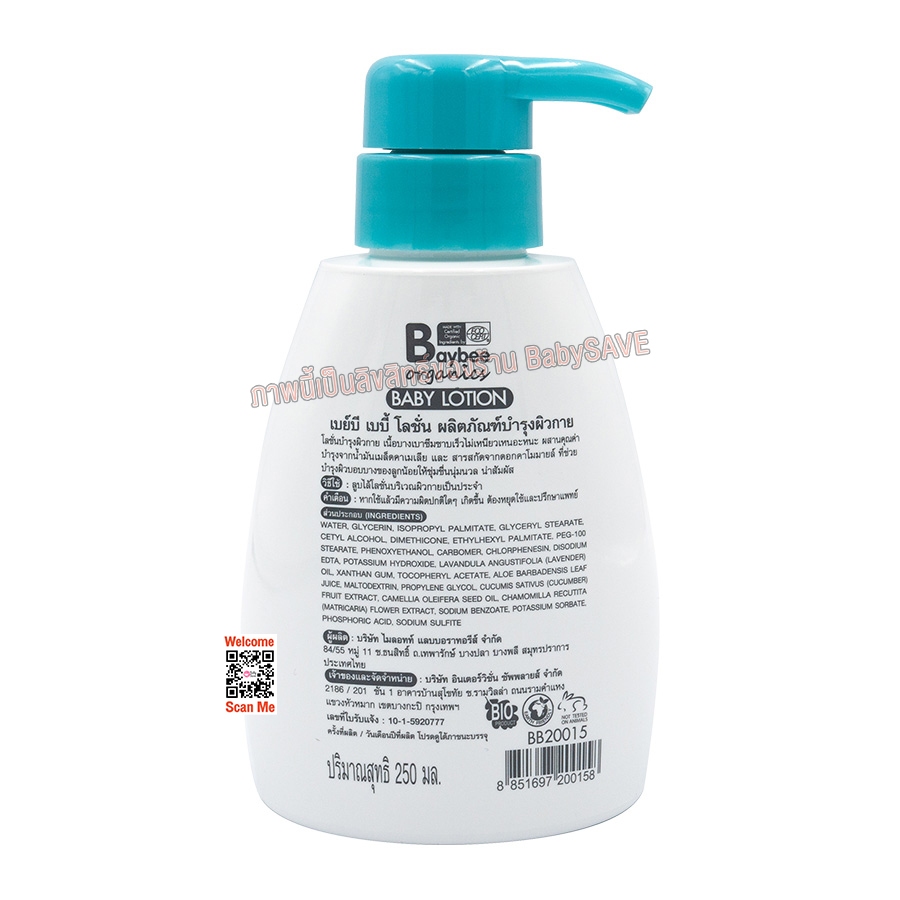 Baybee โลชั่นทาผิวสำหรับเด็ก ออร์แกนิค (Baby Lotion) 250ml.