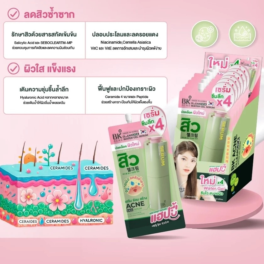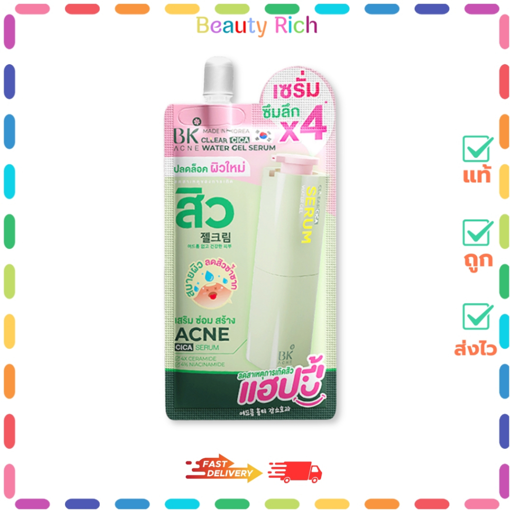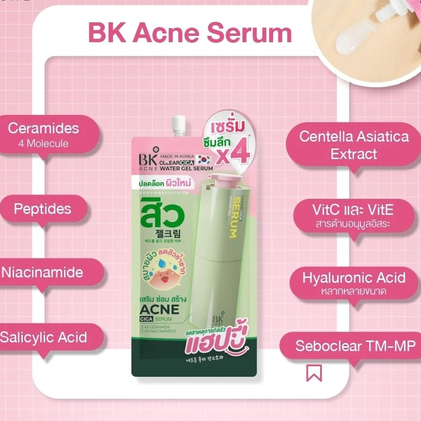 (1 ซอง) BK Acne Cllear Cica water gel Serum บีเค เอคเน่ เซรั่มซึมลึก x4 (8 g.)
