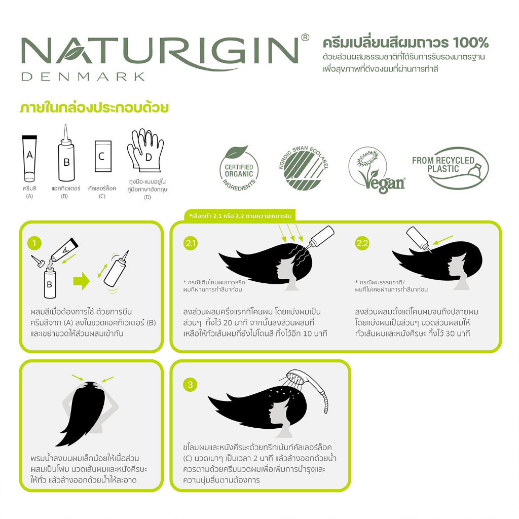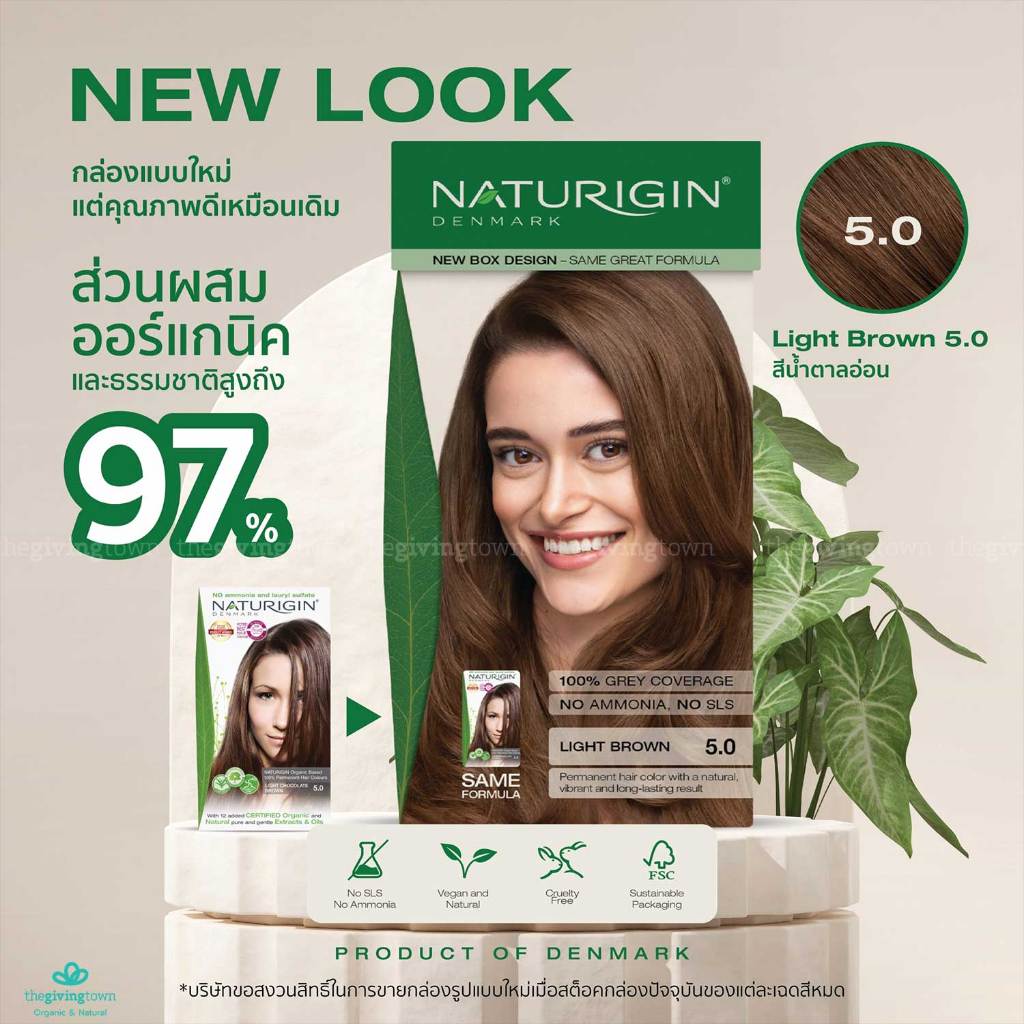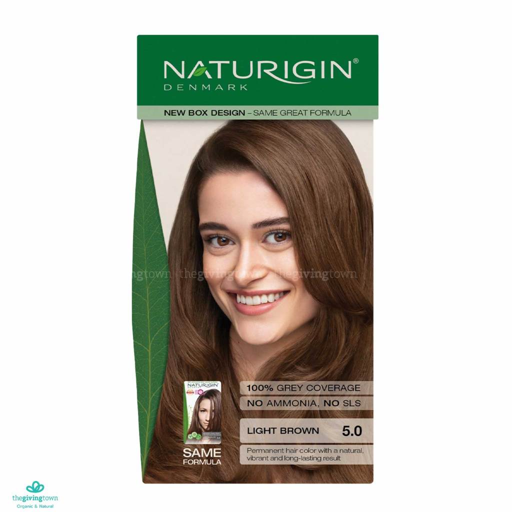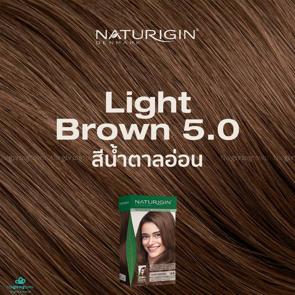 NATURIGIN ครีมเปลี่ยนสีผมถาวร 5.0 สีน้ำตาลอ่อน Light Brown ครีมเปลี่ยนสีผม ยาย้อมผมนำเข้าจากเดนมาร์ก