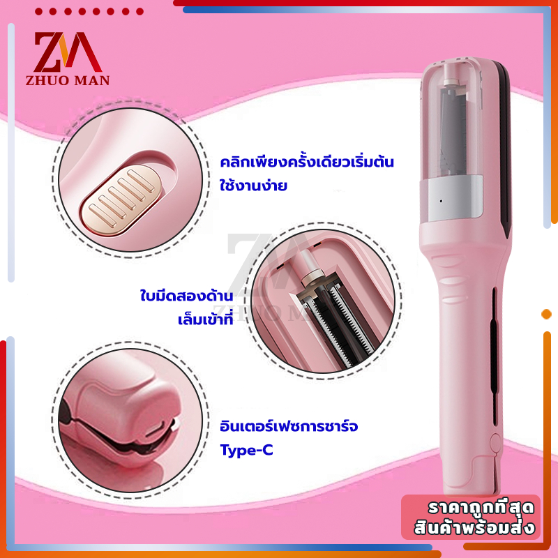 เครื่องตัดผมอัตโนมัติ ปัตตาเลี่ยนปลายแยกผม 2-in-1 เครื่องหนีบผม การควบคุมขอบผมมืออาชีพ องตัดปลายผม แก้ปัญหาผมแตกปลาย