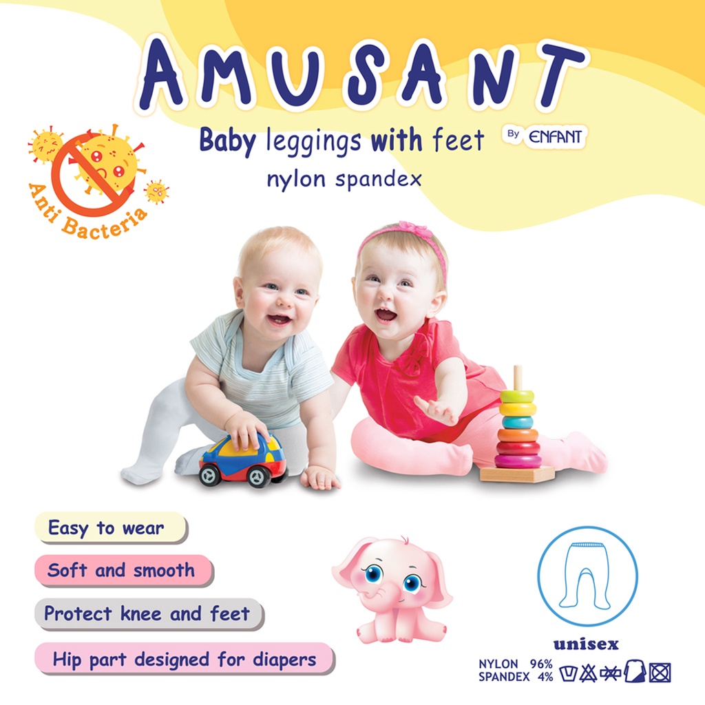 Amusantกางเกงเลคกิ้งแบบคลุมเท้าเด็กอ่อนเริ่ม3เดือน-12เดือน EH3AA8