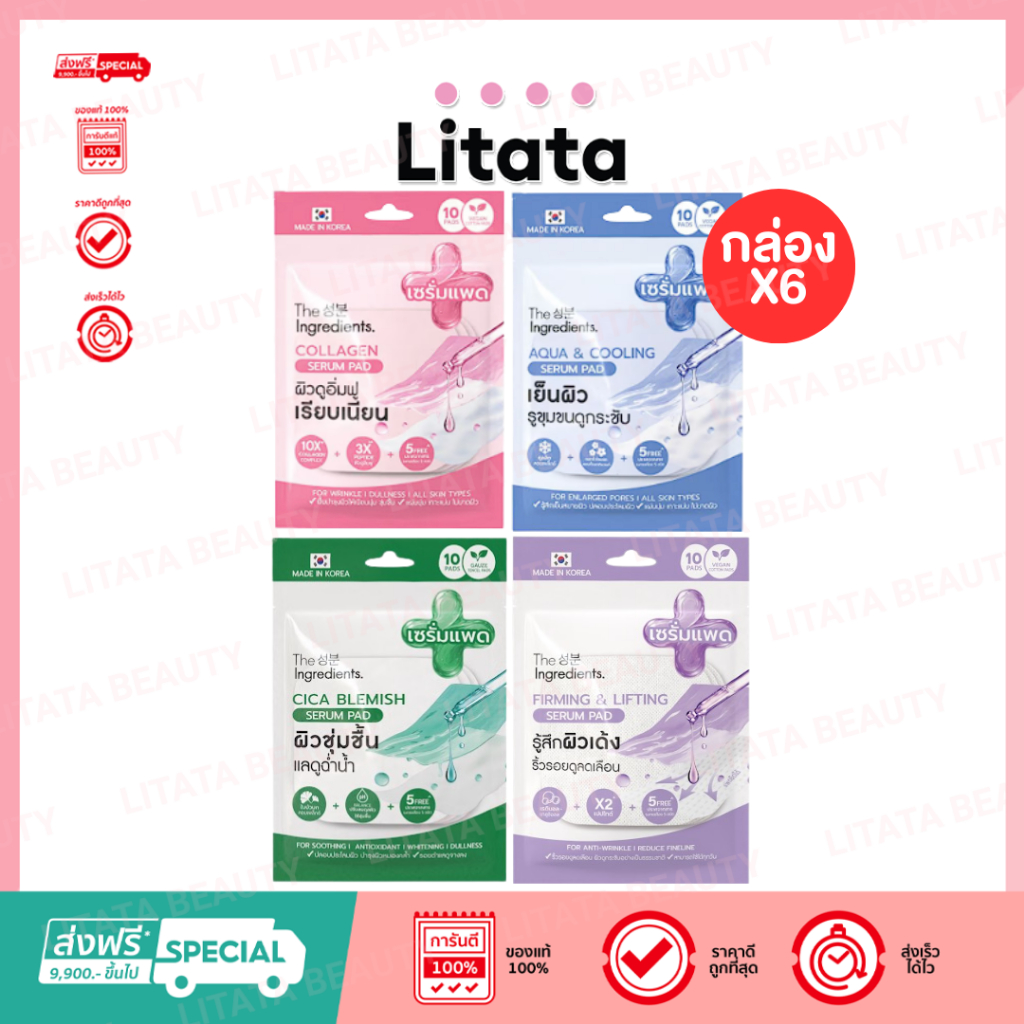 [กล่อง x6] The Ingredients. Serum Pad 23g 10 แผ่น ดิ อินกรีเดียนส์ เซรั่ม แพด