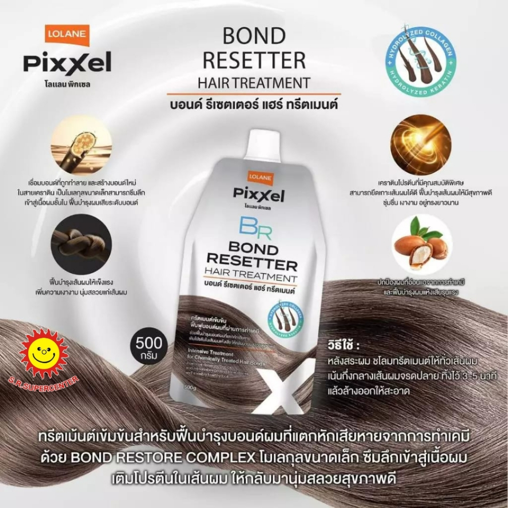 [ 1ชิ้น ] Lolane Pixxel Bond Resetter Hair Treatment โลแลน พิกเซล บอนด์ รีเซตเตอร์ แฮร์ ทรีทเม้นท์ ขนาด 500 กรัม (1ชิ้น)