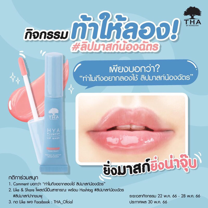 ลิป THA by Nongchat Hya Plumper Lip Mask ลิปมาสก์ไฮยา ฑา น้องฉัตร lip น้องฉัตร hya