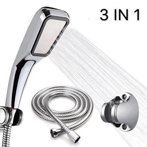 ฝักบัวแรงดัน เพิ่มแรงดันน้ำ ชุดฝักบัว ให้น้ำเป็นละอองแบบแรง ประหยัดน้ำ มีฝักบัว+ที่แขวน+สาย