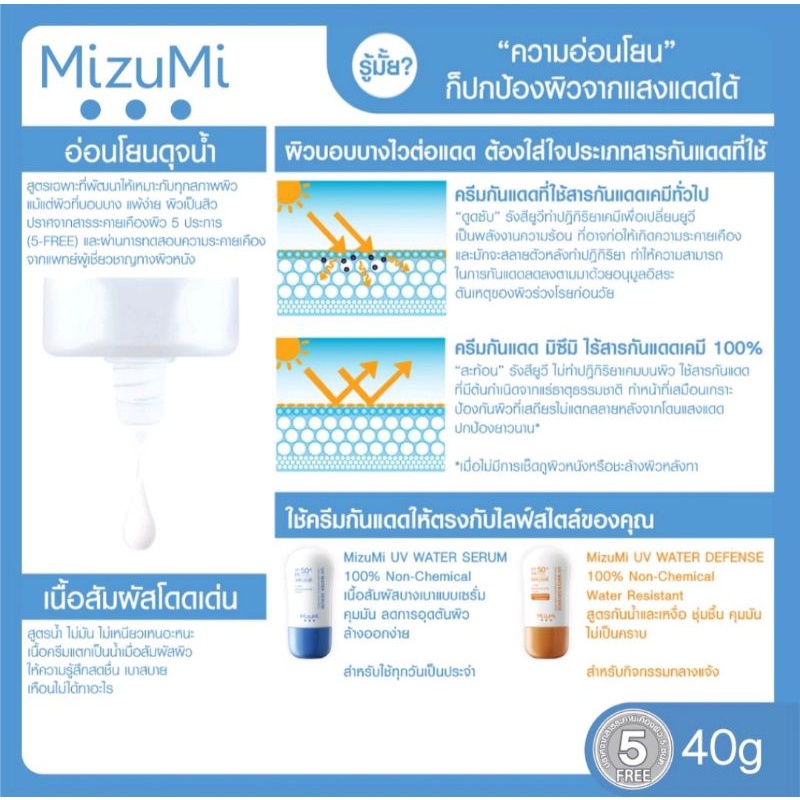 มิซึมิ MizuMi UV Water Serum SPF50+ PA++++ 40g กันแดด ผิวหน้า ขนาด 40 กรัม มี 2 สูตรให้เลือก