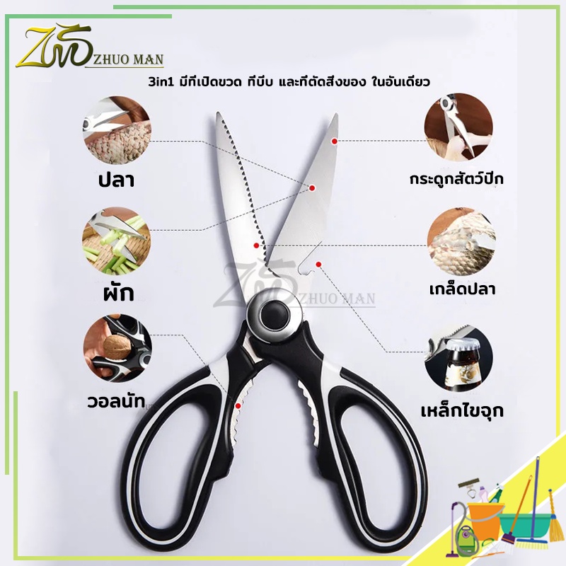 กรรไกรสแตนเลส สารพัดประโยชน์ สแตนเลสอย่างดี สะดวกสบายในการถือน้ำหนักเบากันสนิมและทนทาน