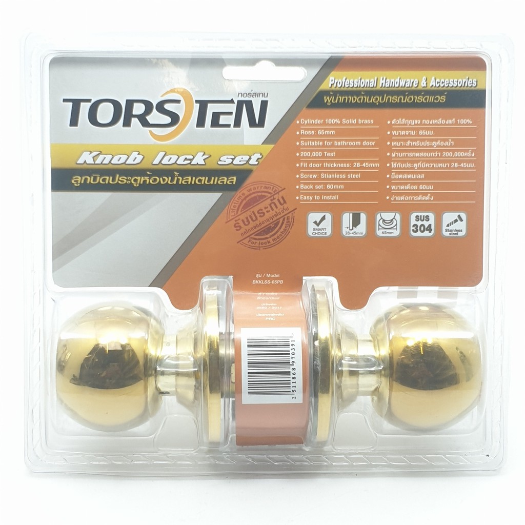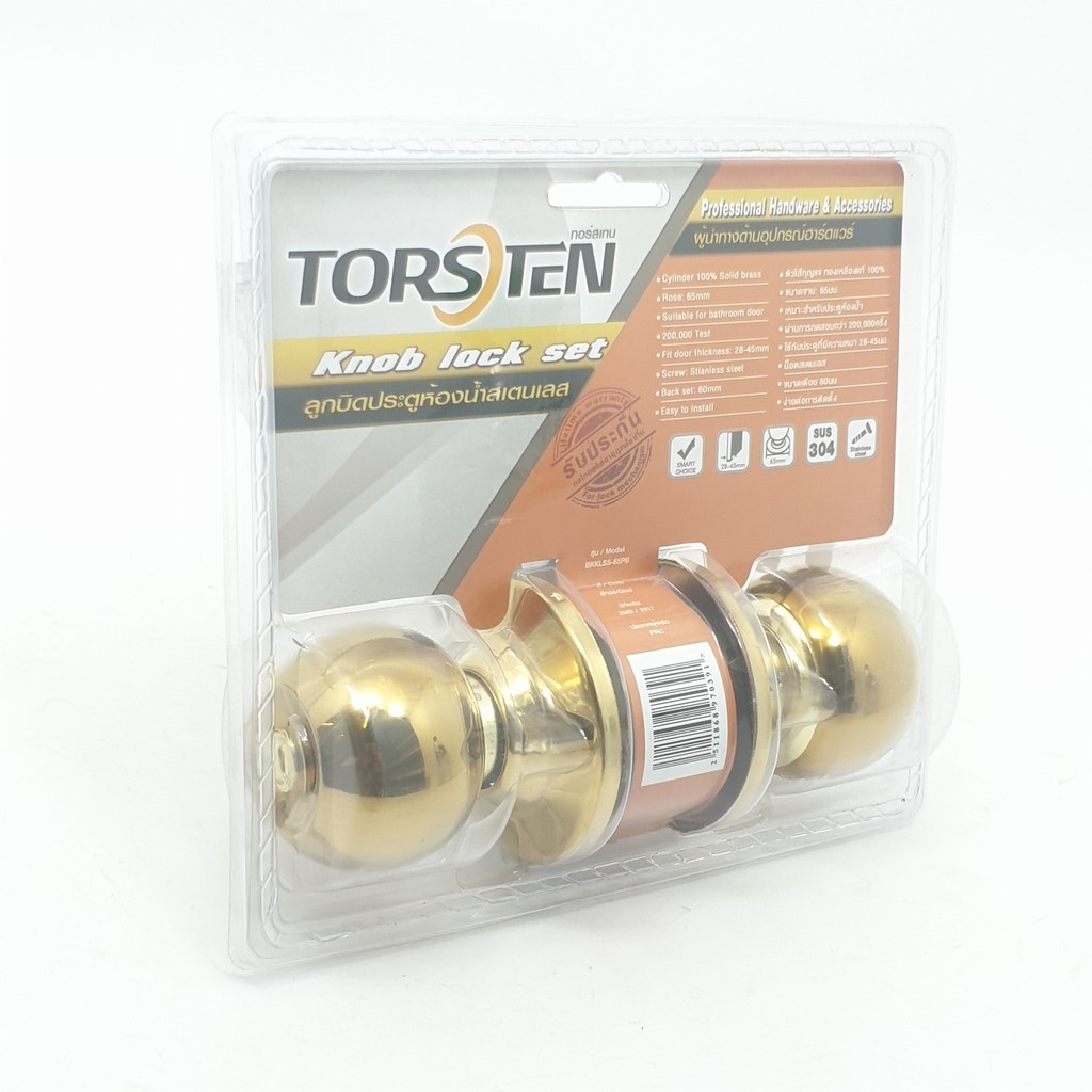GlobalHouse ลูกบิดประตูห้องน้ำสเตนเลส 304 รุ่นBKKLSS-65PB จาน65มม. สีทอง สินค้าของแท้คุณภาพดี