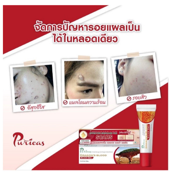 Puricas Dragon’s Blood Scar Gel เพียวริก้าส์ ดราก้อนบลัด สการ์ เจล ขนาด 3 กรัม และ 8 กรัม