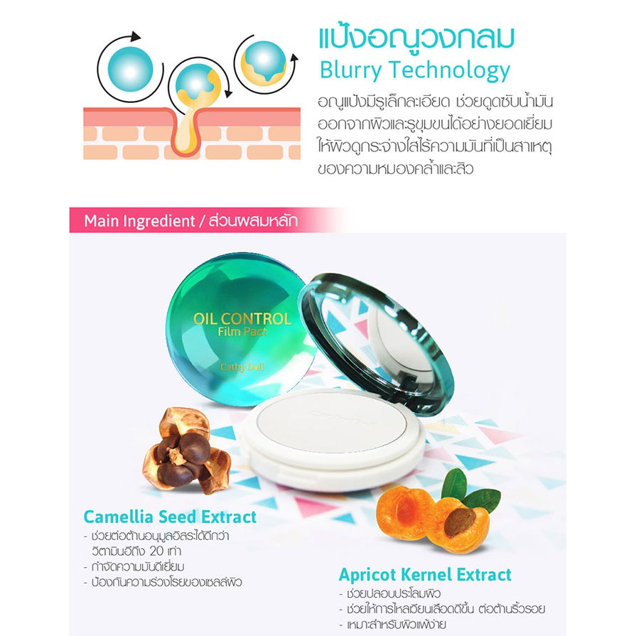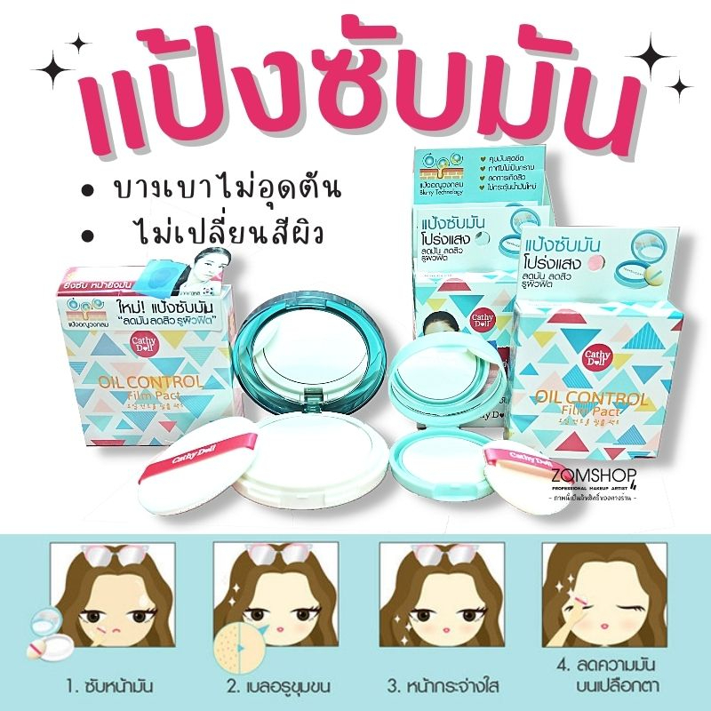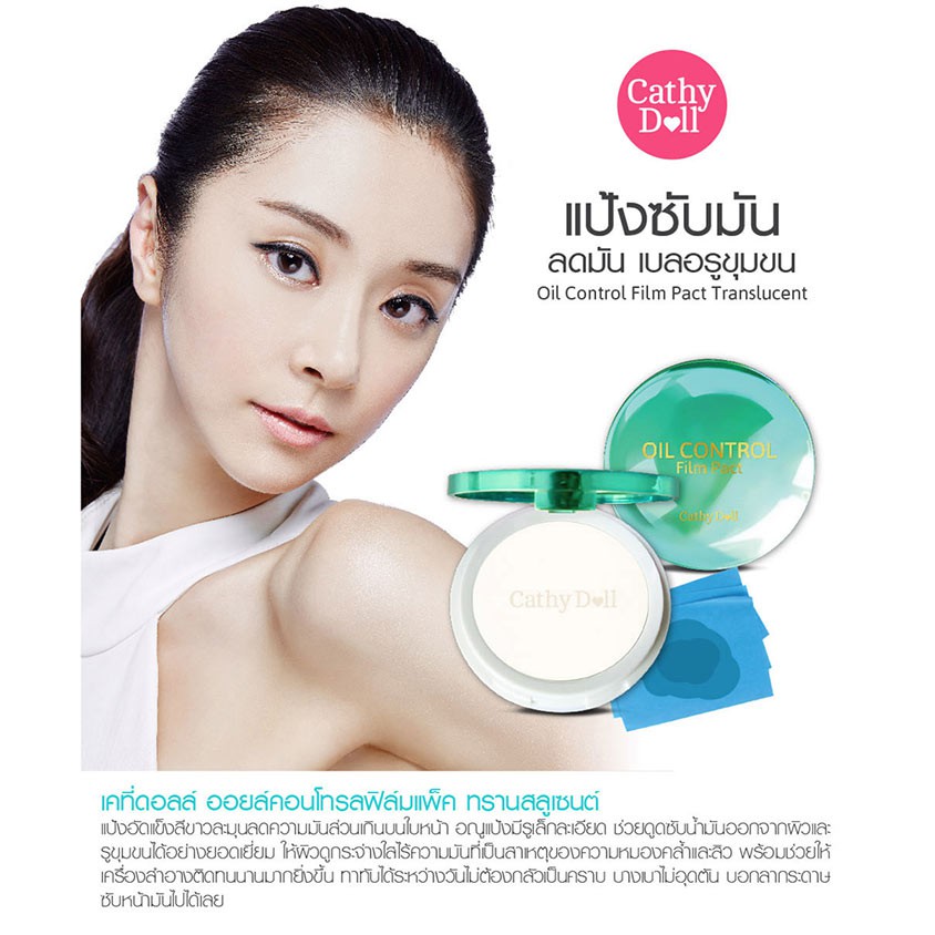 💟 แป้งซับหน้ามัน💟【ผิวมัน ไม่เป็นคราบ ไม่อุดตัน】Cathy Doll Oil Control Film Pact Translucent 4.5g.