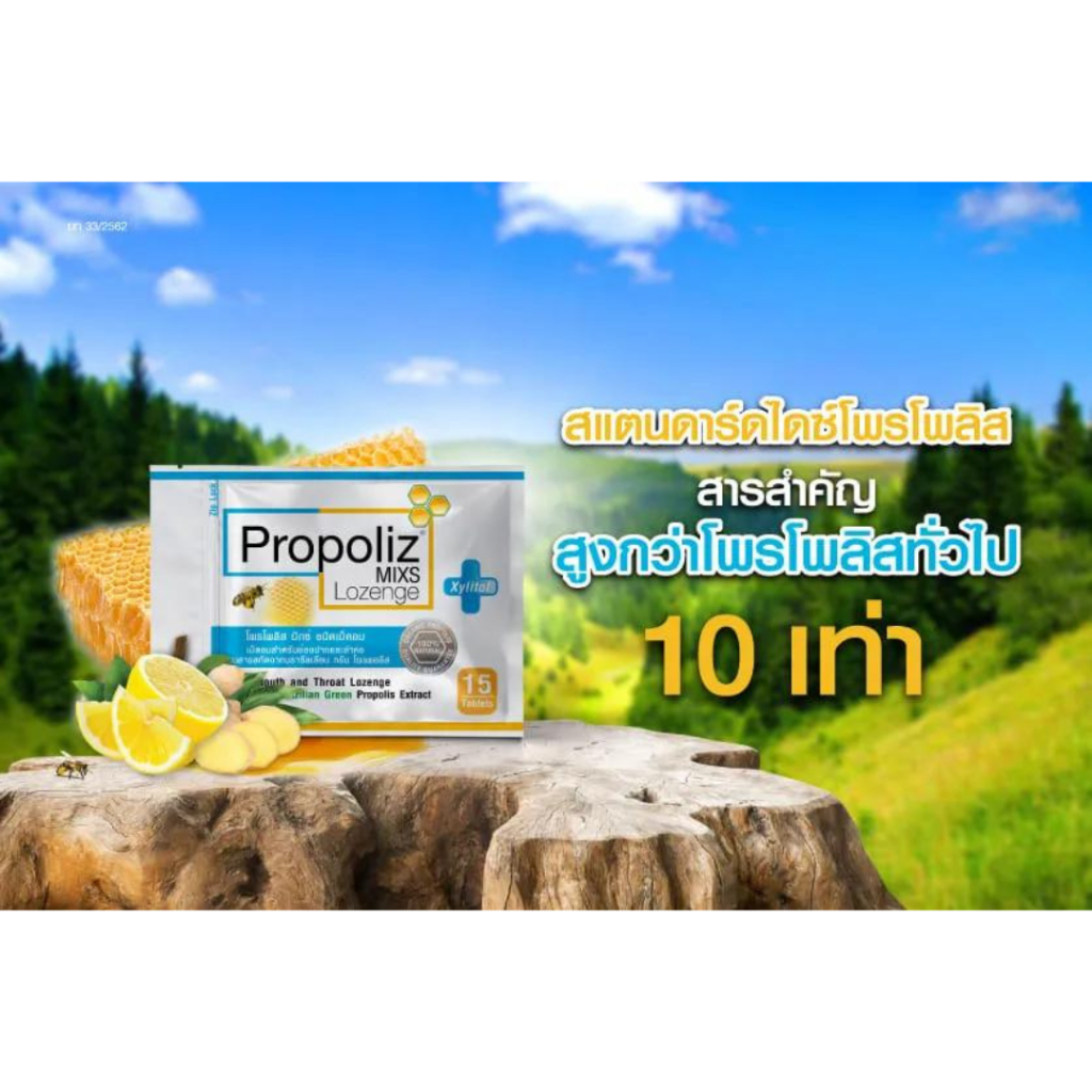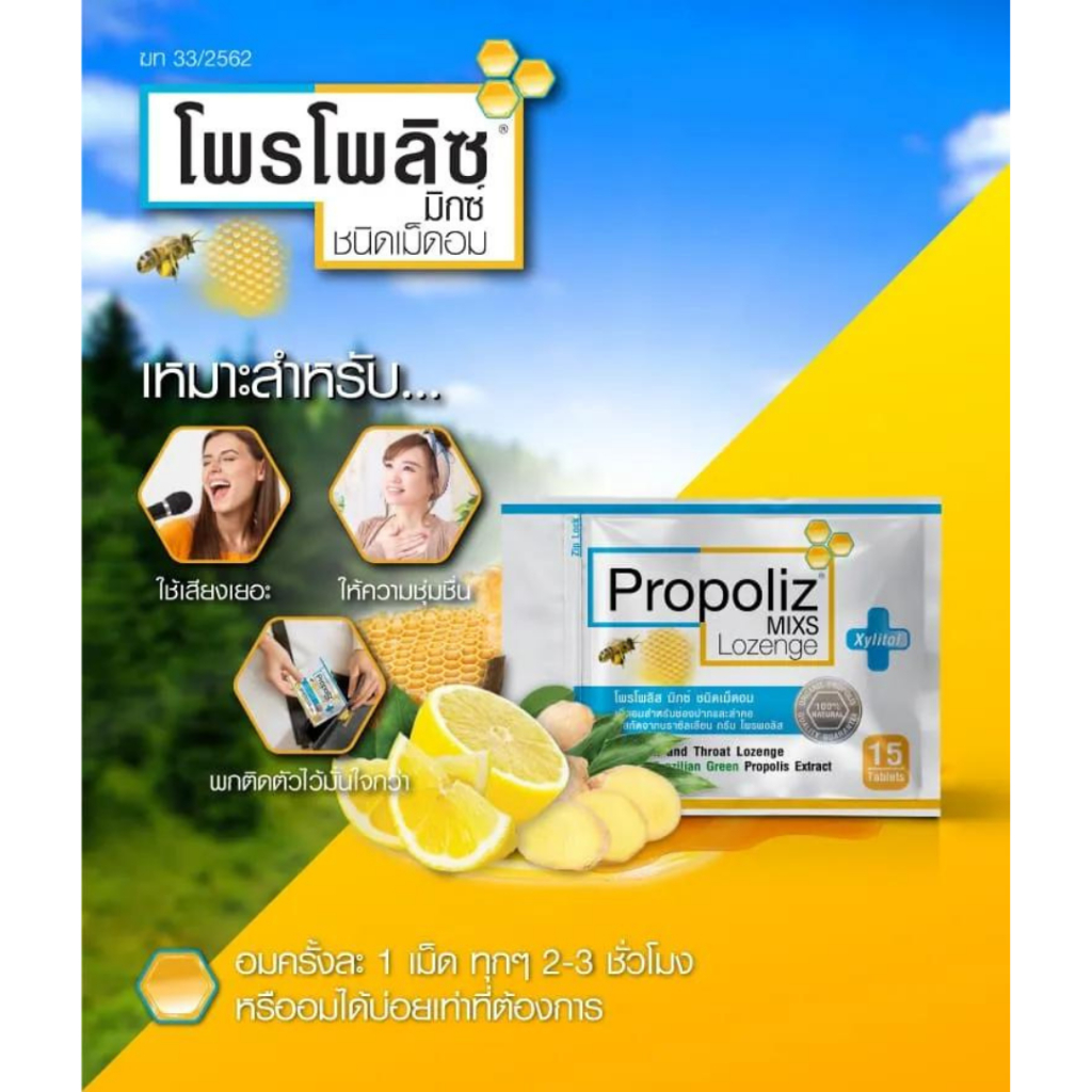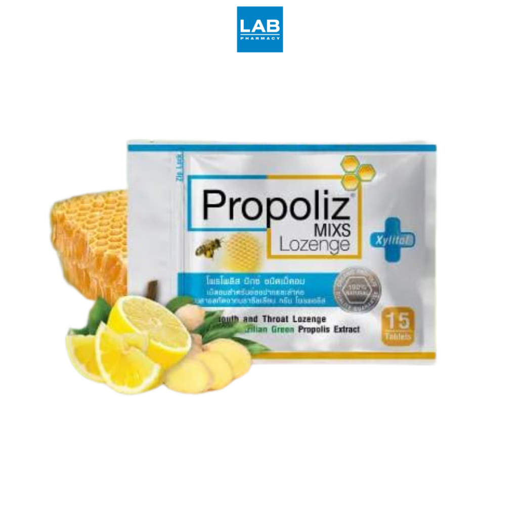 Propoliz Mixs Lozenge 15 Tablets โพรโพลิซ มิกซ์ ชนิดเม็ดอม 15 เม็ด รสดั้งเดิม สำหรับช่องปากและลำคอ