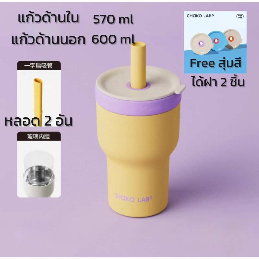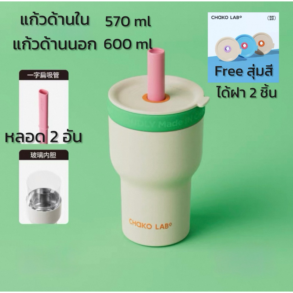 Chako Lab 2 in 1 แก้วเก็บความเย็น 2 ชั้น ของแท้ พร้อมส่ง ขนาด 570 / 600 ml แถมฟรีแปรงล้างหลอดทุกใบ