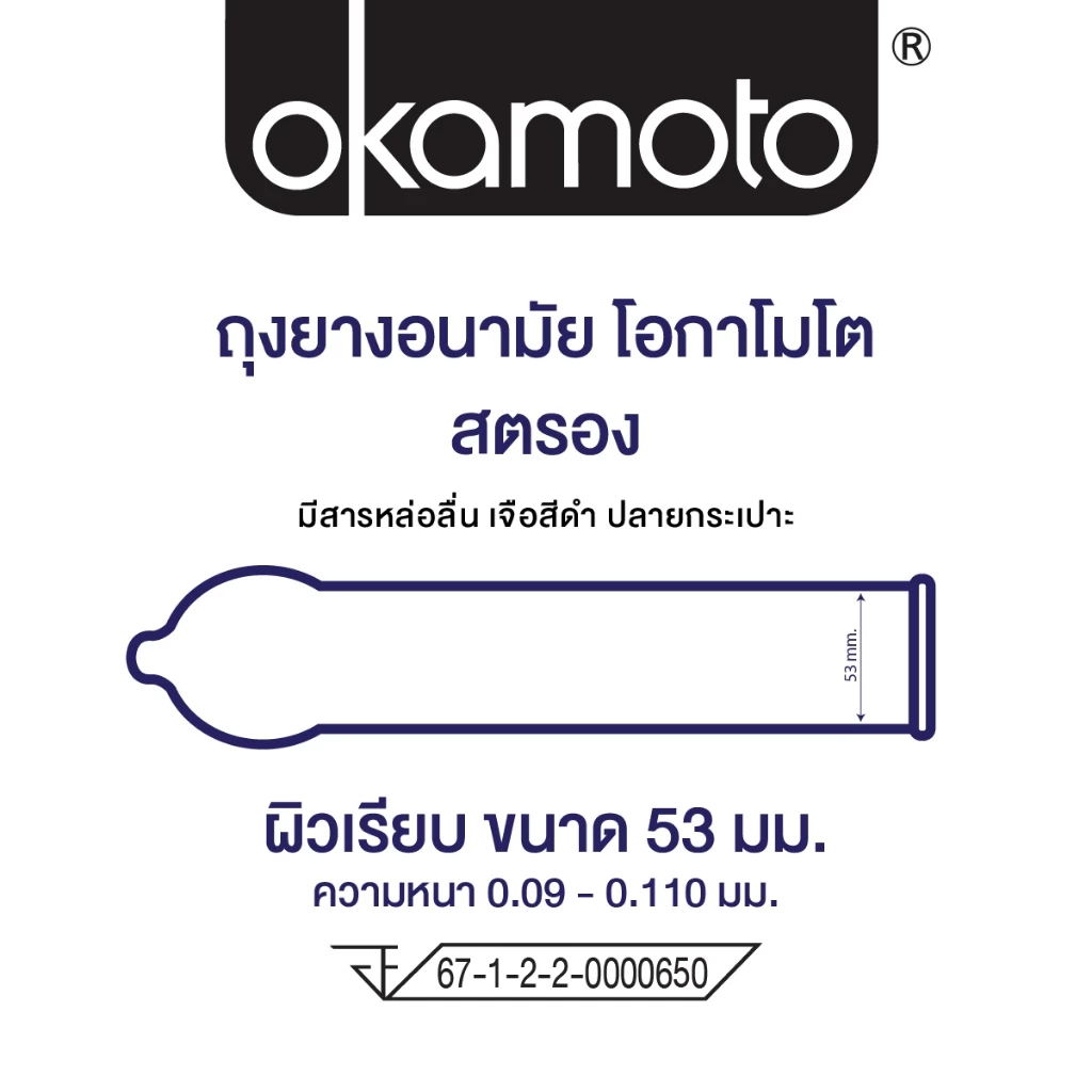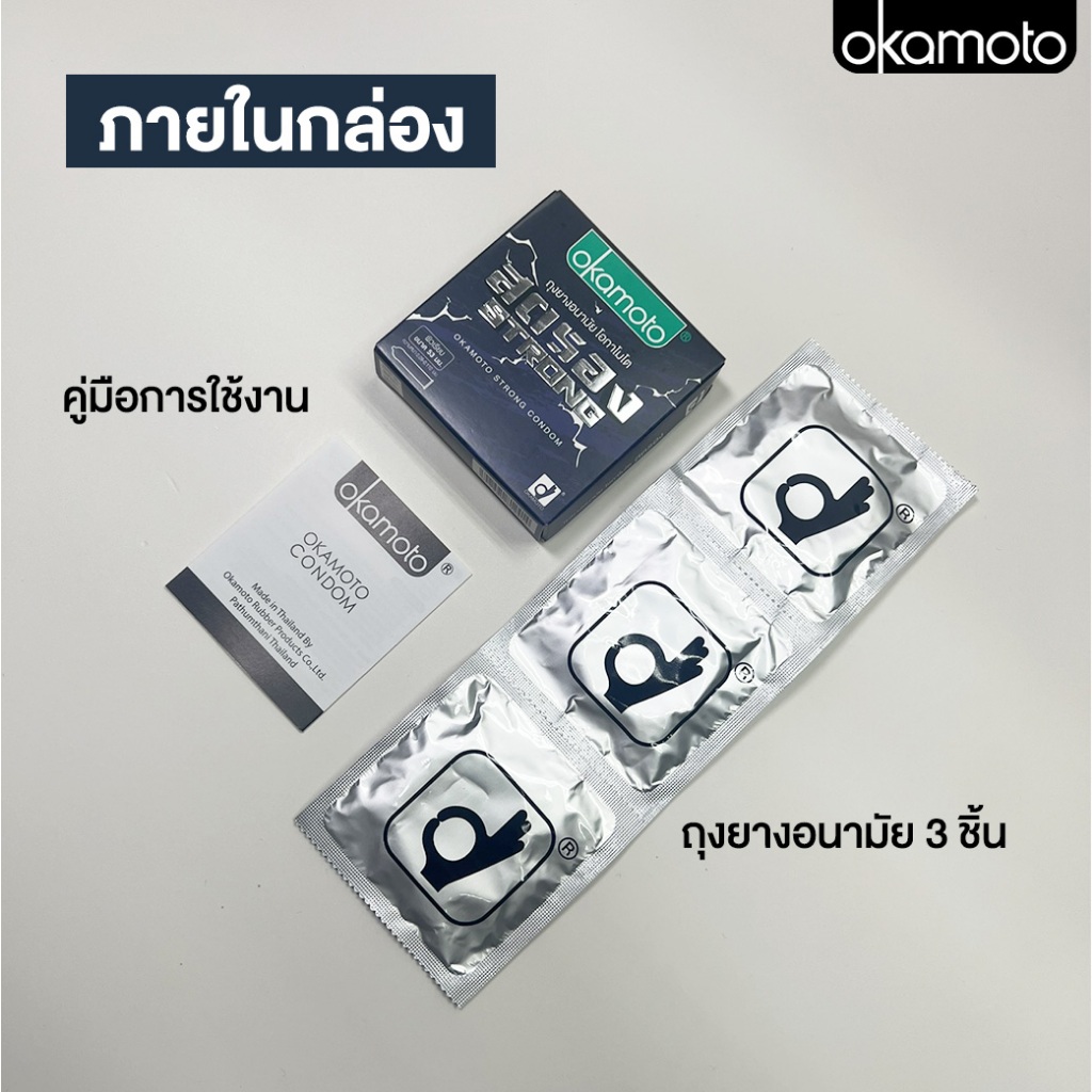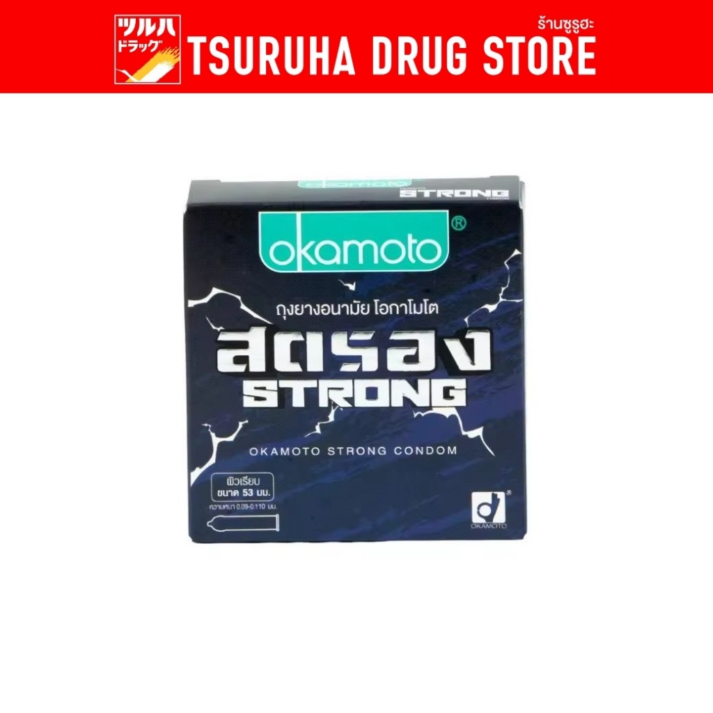 โอกาโมโต ถุงยางอนามัย ผิวเรียบ ขนาด 53 มม. 3 ชิ้น/กล่อง Okamoto Strong Condom 53mm 3's