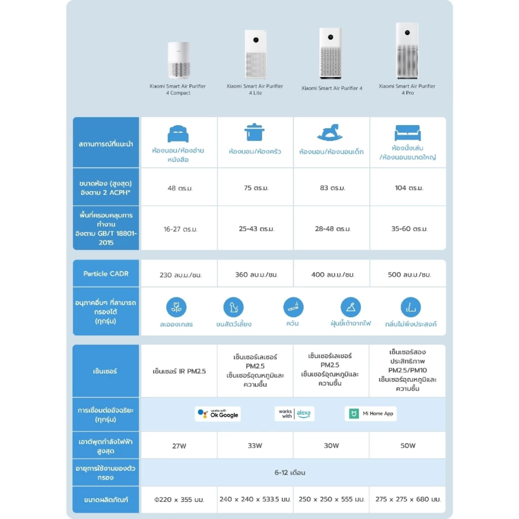 Xiaomi Smart Air Purifier 4 Compact เครื่องฟอกอากาศอัจฉริยะ รับประกัน 1 ปี ศูนย์ไทย