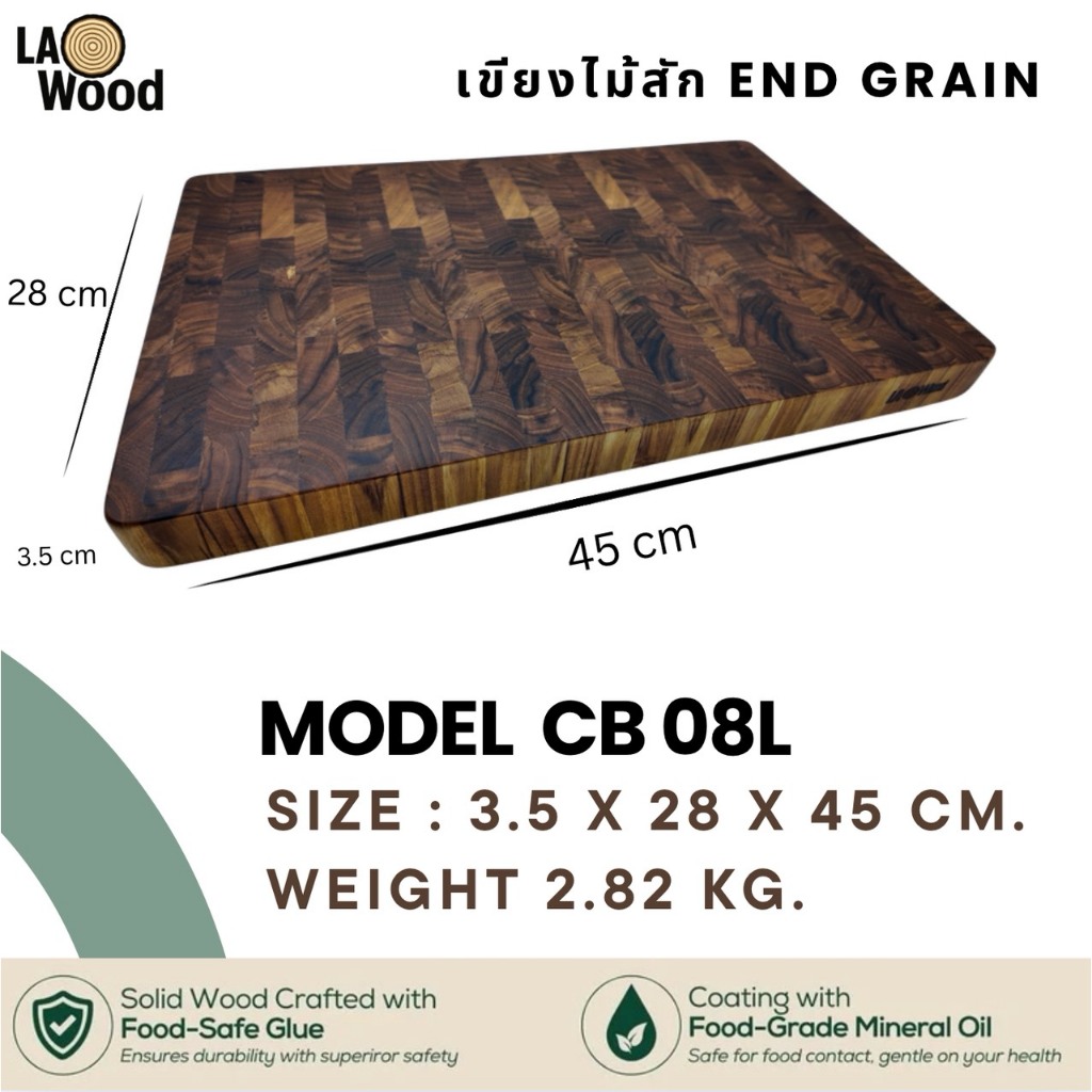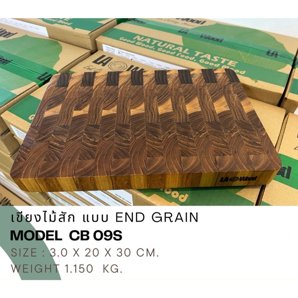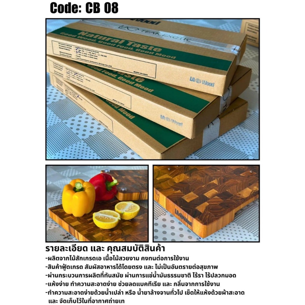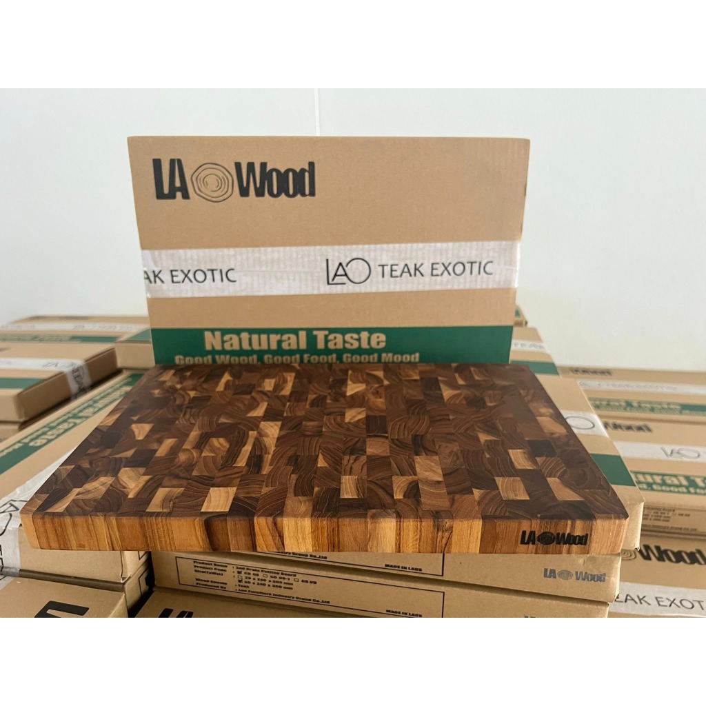 Lao wood เขียงไม้สักเกรดเอ ขนาด 2.8 x 24 x 38 ซม. รุ่น CB-08 และ 3.5x28x45 ซม. รุ่น CB-08L และ 3x20x30 ซม. รุ่น CB-09S