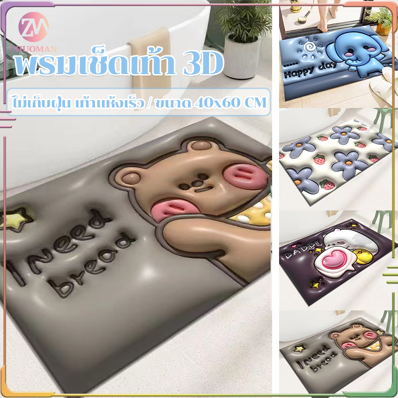 ผ้าเช็ดเท้า พรมเช็ดเท้า ไม่เก็บฝุ่น เท้าแห้งเร็ว กันลื่น ดูดความชื้น เนื้อนิ่ม ดูดซับน้ำได้ดี มี 4 สีให้เลือก