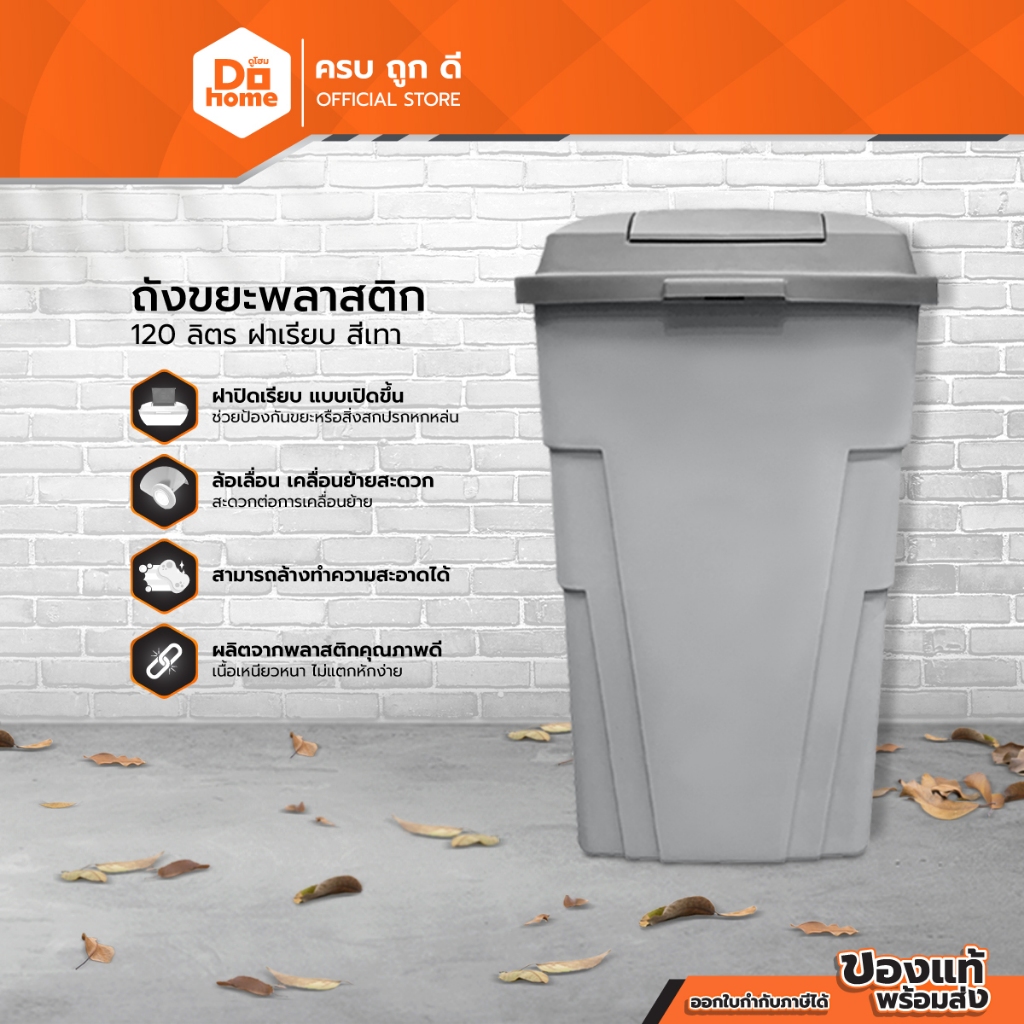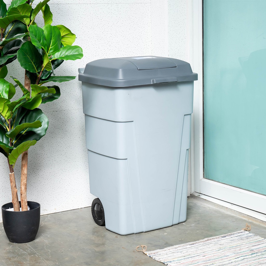 ถังขยะพลาสติก 120 ลิตร ฝาเรียบ สีเทา |BAI|