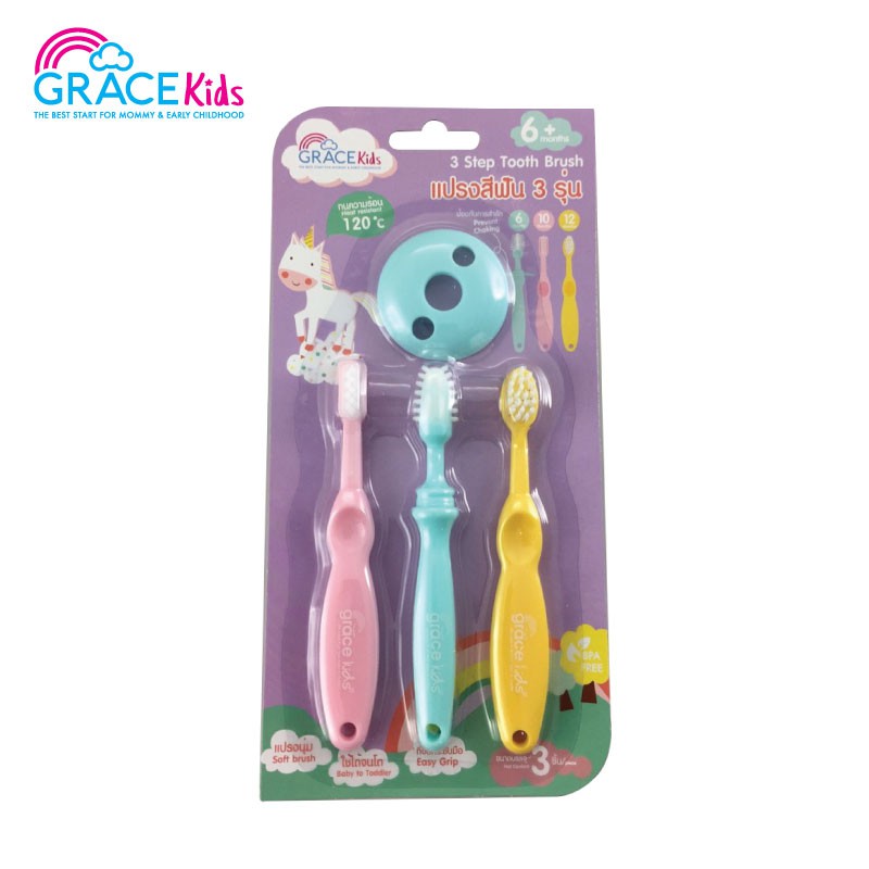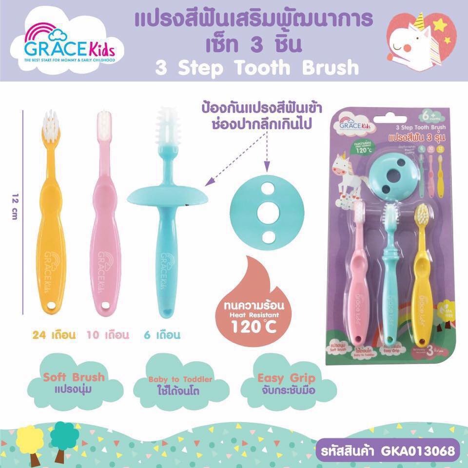 Gracekids เกรซคิดส์แปรงสีฟันเสริมพัฒนาการเซ็ท 3 ชิ้น