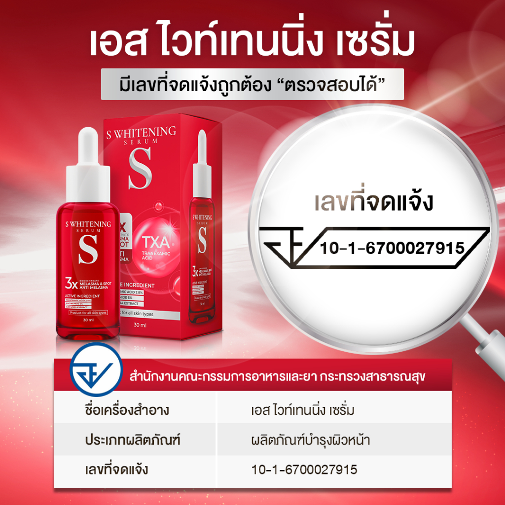 [สูตรใหม่] เอสเซรั่ม 2 แถม 2 ขวด - S Whitening Serum ส่งตรงจากโรงงาน
