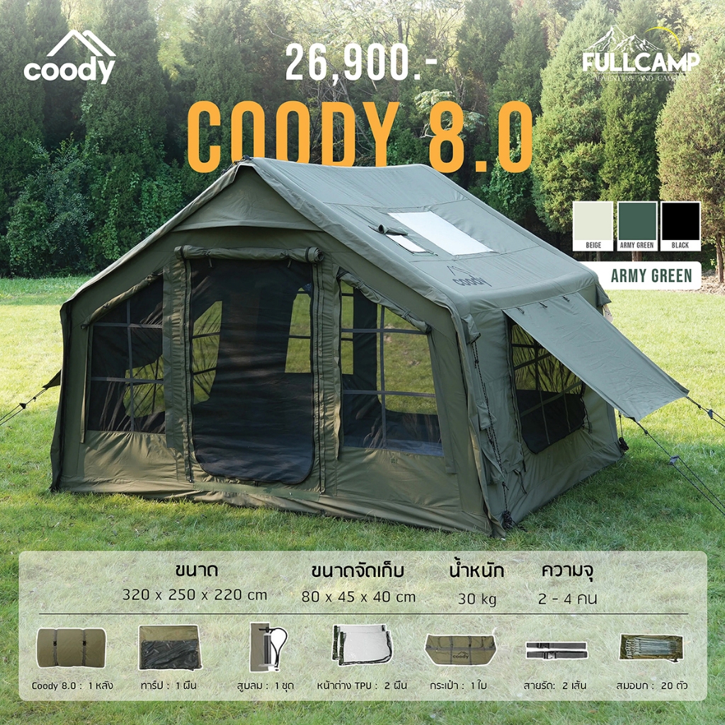 Coody เต็นท์ 8.0 รุ่น upgrade เต็นท์เสาลม "แถม rain cover และปั๊มลม " รับประกัน 5 ปี สินค้าพร้อมส่ง