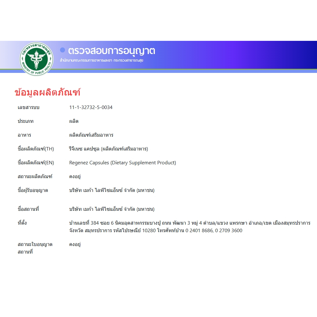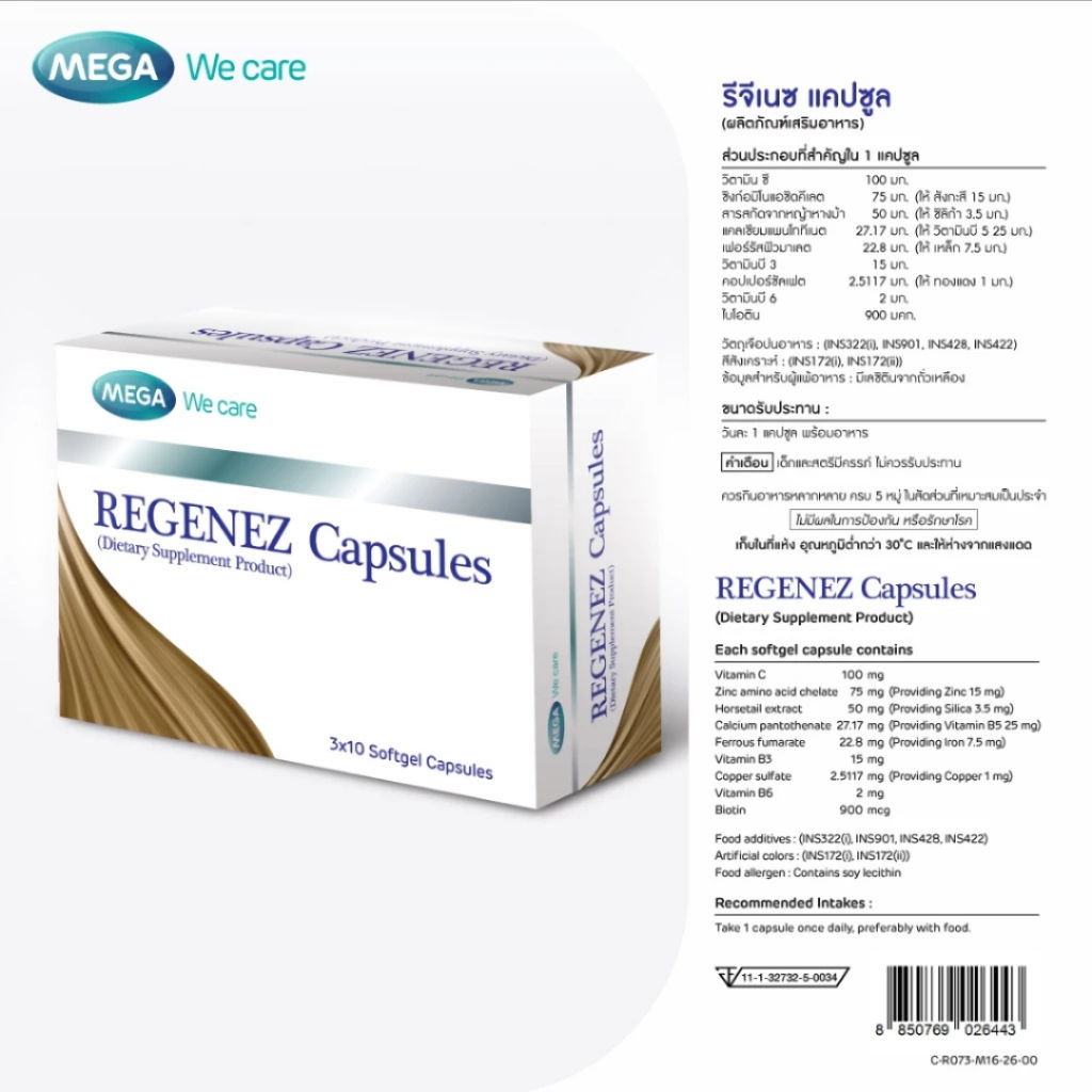 (แคปซูล) MEGA We care เมก้าวีแคร์ REGENEZ Capsules รีจีเนซ แคปซูล #1976