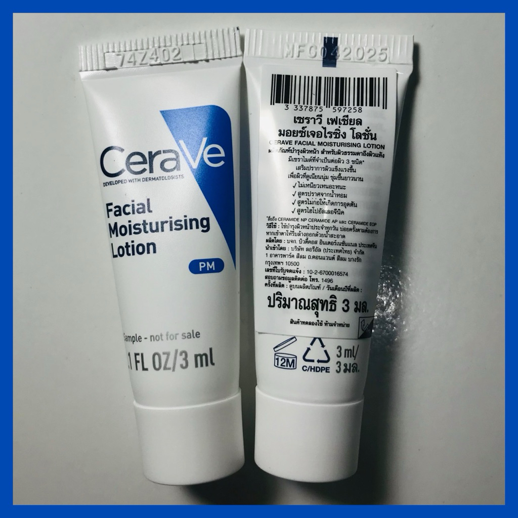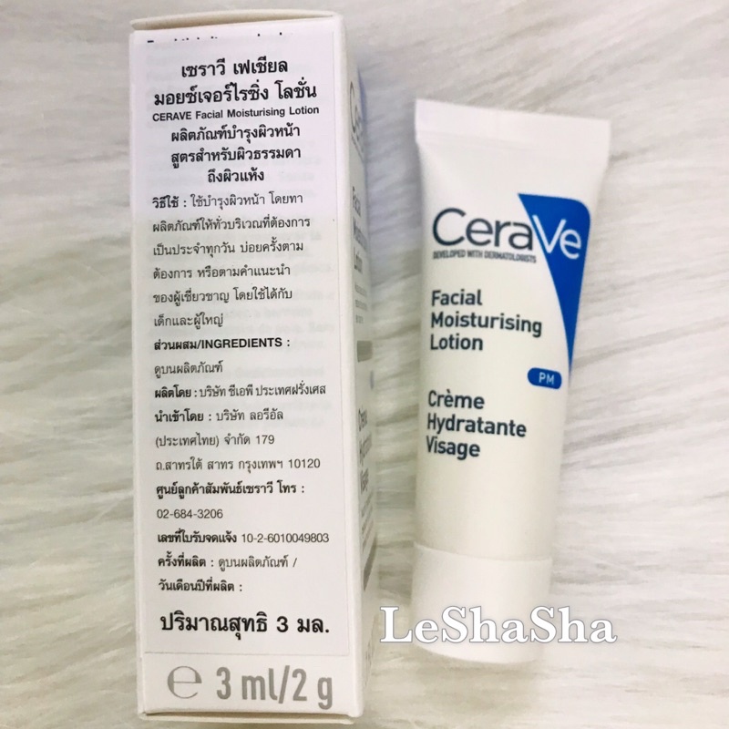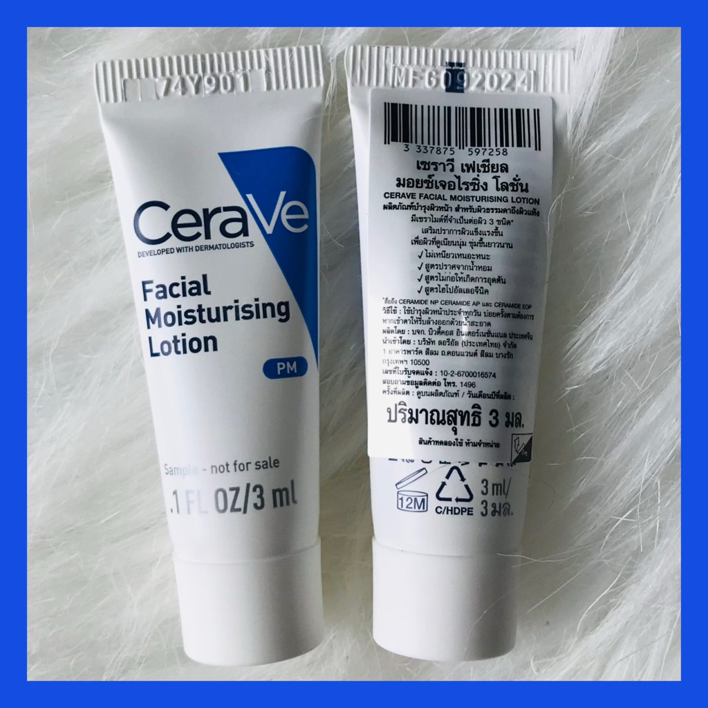 🔥ส่งทันทีได้‼️ผลิตฝรั่งเศส🔥Cerave PM เซราวีพีเอ็ม Cerave Facial Moisturising Lotion PM โลชั่นบำรุงผิวหน้า ขนาด 3 ml.