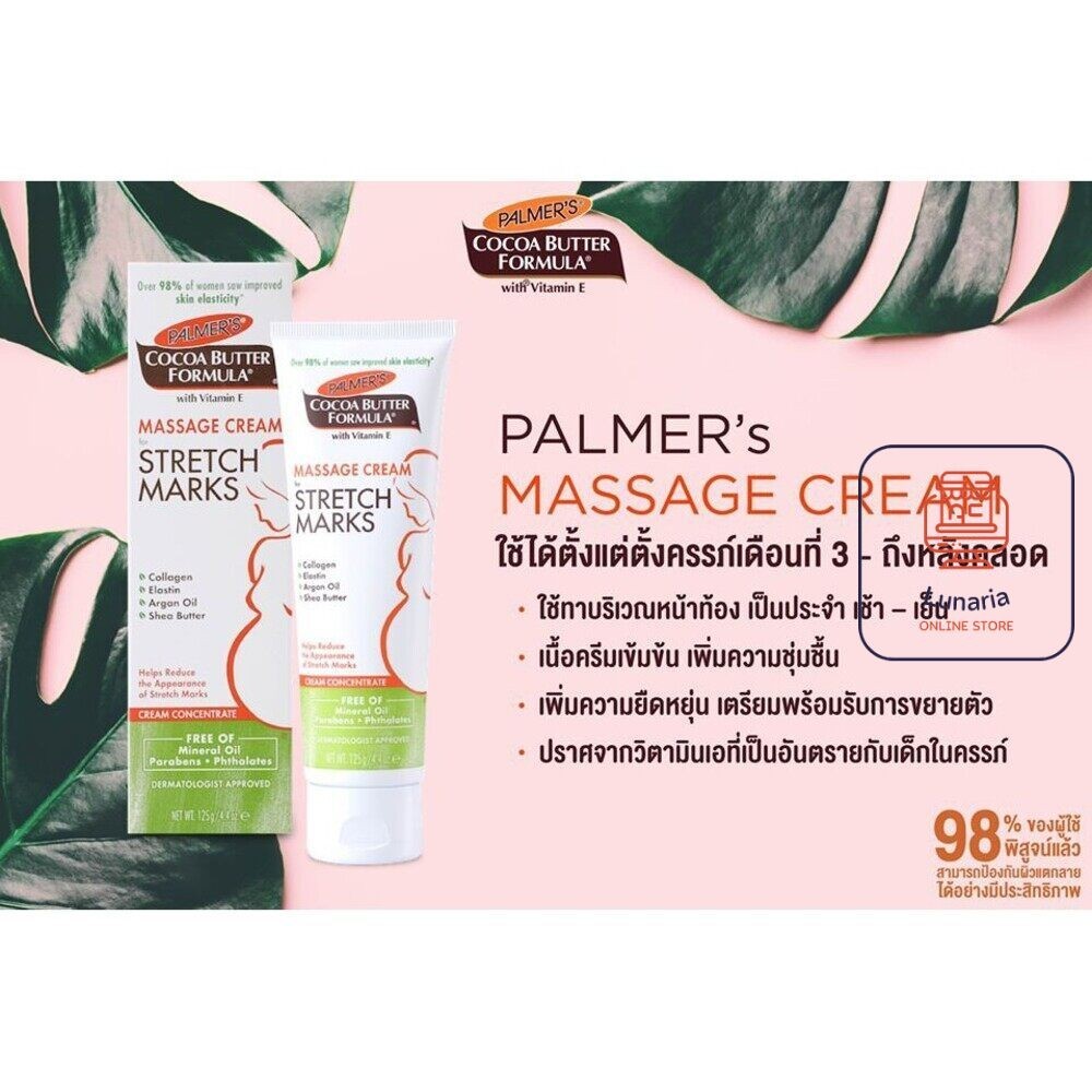 Palmer's Cocoa Butter Massage Cream Stretch Marks ปาล์มเมอร์ มาสซาส ตรีม เดือนที่3-หลังคลอด ขนาด 125 g.