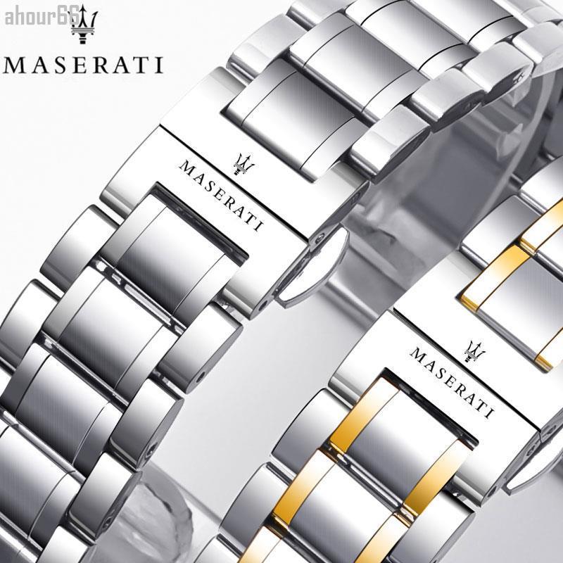 มาเซราติ สายนาฬิกาสายเหล็กเปลี่ยน มาเซราติ สแตนเลสแข็งผู้ชายผู้หญิงสร้อยข้อมือผีเสื้อหัวเข็มขัดอุปกรณ์เสริม