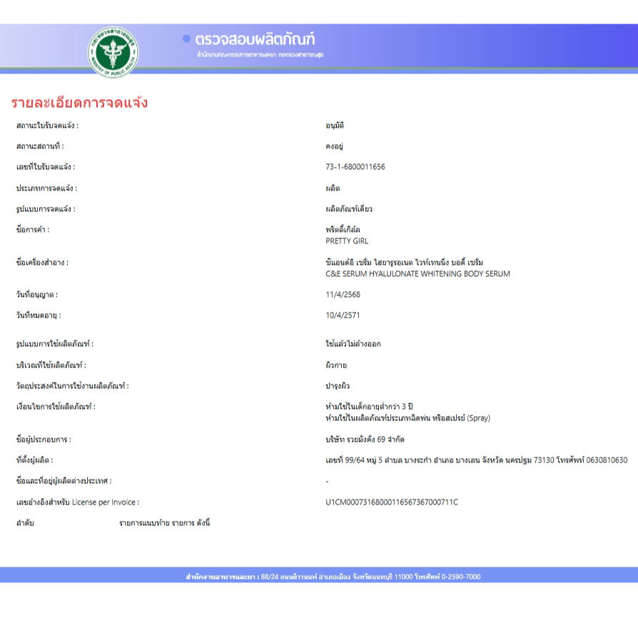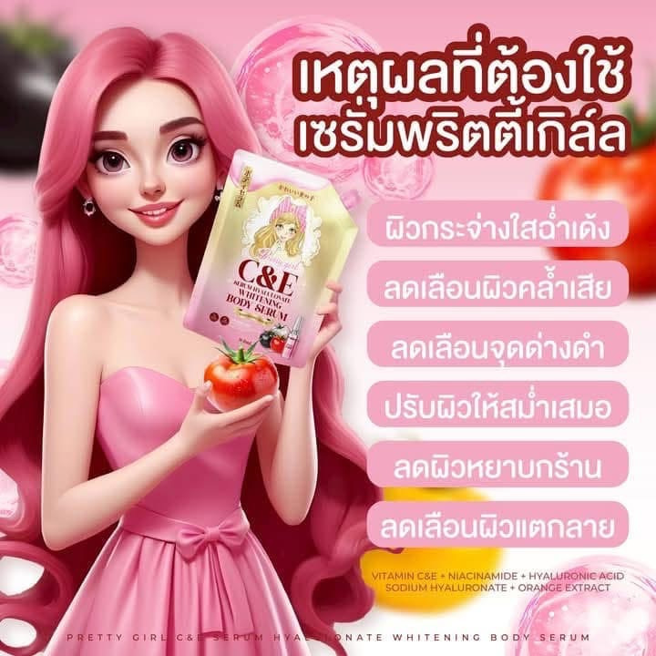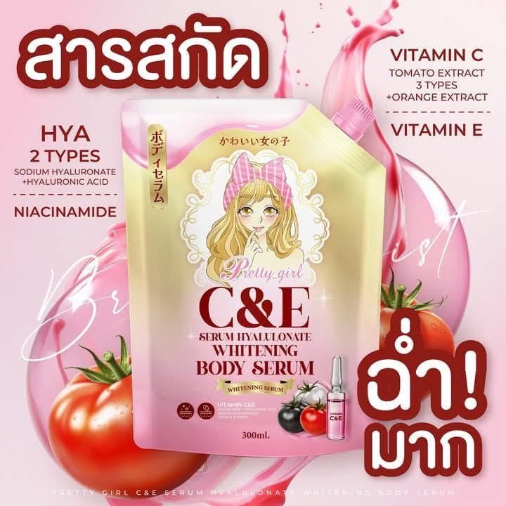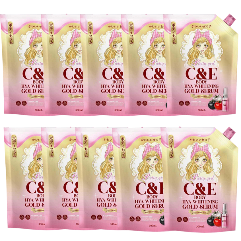 เซรั่มไฮยา พริตตี้เกริล พริตตี้เกิล์ล PRETTY GIRL C&E SERUM ไวท์เทนนิ่ง บอดี้ เซรั่ม เซต 10 ถุง ขนาด 300 มล.