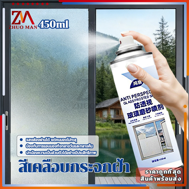 สีทากระจก สีเคลือบกระจกฝ้า 450ML สีฟิล์มเคลือบกระจกฝ้า สเป รย์ฟิล์มเคลือบด้านป้องกันการแอบดูสําหรับห้องน้ํา/หน้าต่าง