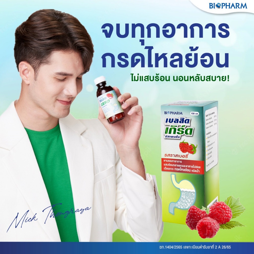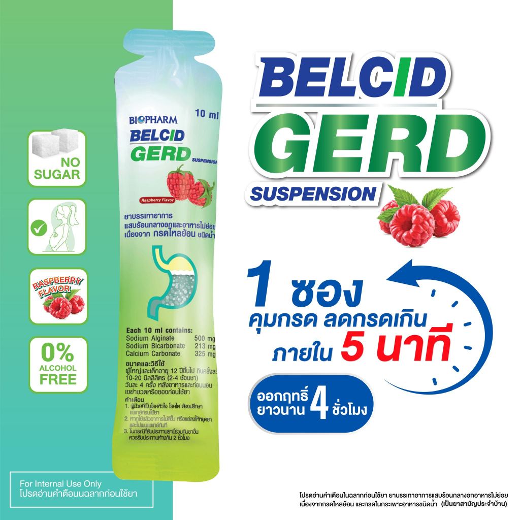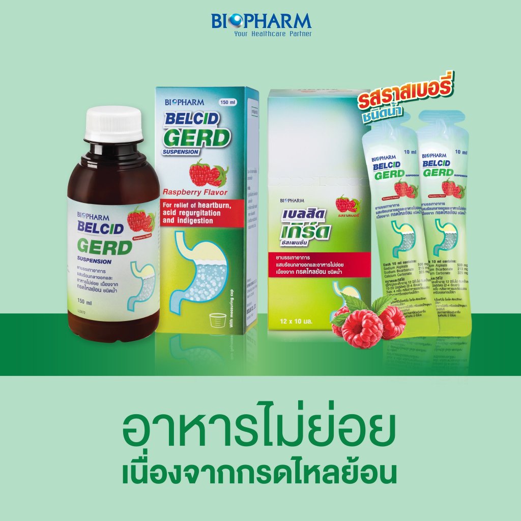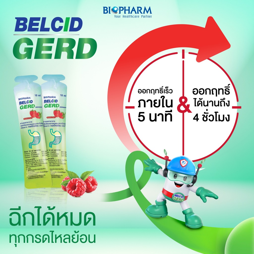 Biopharm Belcid Gerd ไบโอฟาร์ม เบลสิด เกิร์ด [สินค้ามีให้เลือก 2 แบบ] ลดกรด รสราสเบอร์รี ลดกรดไหลย้อน บรรเทาอาการแสบร้อน