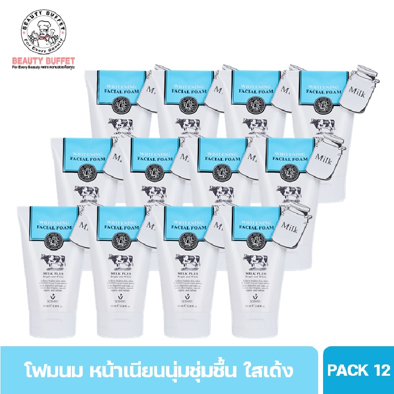 [แพ็ค 12 ราคาพิเศษ] BEAUTY BUFFET SCENTIO Milk Plus Whitening Q10 Facial Foam เซนทิโอมิลล์พลัสไวท์เทนนิ่ง เฟเชียลโฟมคิวเทน (100ml.)