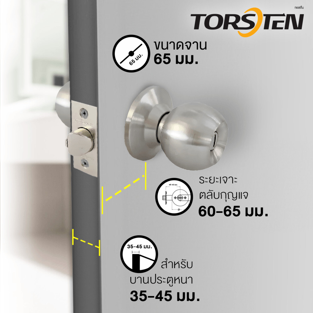 GlobalHouse TORSTEN ลูกบิดห้องน้ำ สเตนเลส-304 รุ่น 587 BK-SS สีสเตนเลส สินค้าของแท้คุณภาพดี