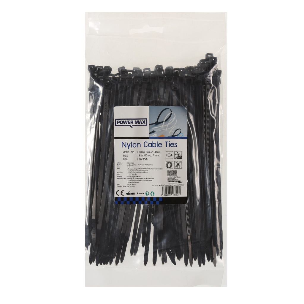 POWER MAX เคเบิ้ลไทร์ 6 นิ้ว x 3.6 มม. สีดำ (แพ็ค 100 ชิ้น) |ZWG|