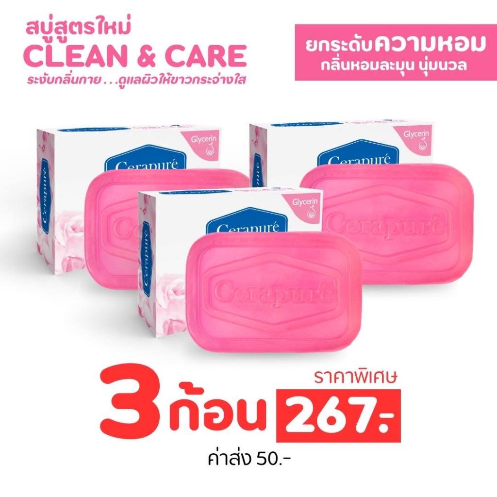 (ส่งฟรี)สบู่ 3 ก้อน สบู่ระงับกลิ่นกาย ลดกลิ่นเหงื่อและกลิ่นตัว Cerapure (ของแท้ 100%)
